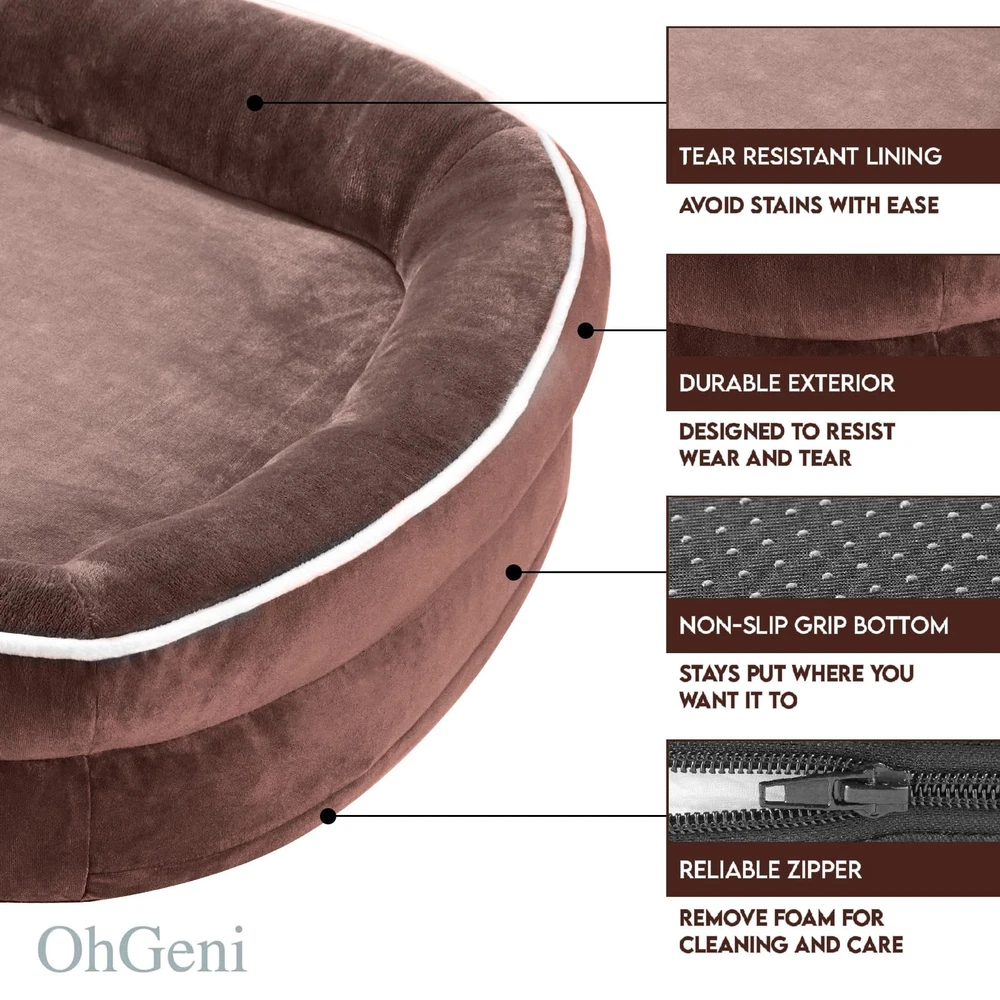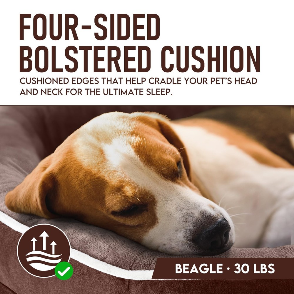 Egg Crate Foam Filling: Our orthopedic dog bed features egg crate filling, delivering exceptional softness and support compared to traditional foam beds. The 3” high cushion ensures even weight distribution, providing comfort for your dog’s joints. Convenient Removable Cover: Our beds come with a removable zippered cover, making it effortless to remove and wash. The cover is constructed from durable and scratch-resistant fabric, ensuring longevity even with active or mischievous dogs. Wash the cover on a delicate cycle to enjoy longer! Waterproof Inner Lining for Longevity: The smart and fully waterproof inner lining of our egg crate foam dog bed is washable, safeguarding the foam from pet urine, accidents, messes, and dust. This ensures the bed remains in excellent condition, even after your dog makes a mess. Comfortable Fleece Fabric: Our dog beds boast an ultra-soft fleece fabric interior for the ultimate combination of comfort and breathability. This material offers superior protection against biting, scratching, clawing, and damage. Secure and Cozy Environment: Our dog bed features plush side bolsters, offering your furry friend a safe and snug space for rest, promoting a sense of security. Help your pet pals feel contained and calm with our bolstered dog bed.