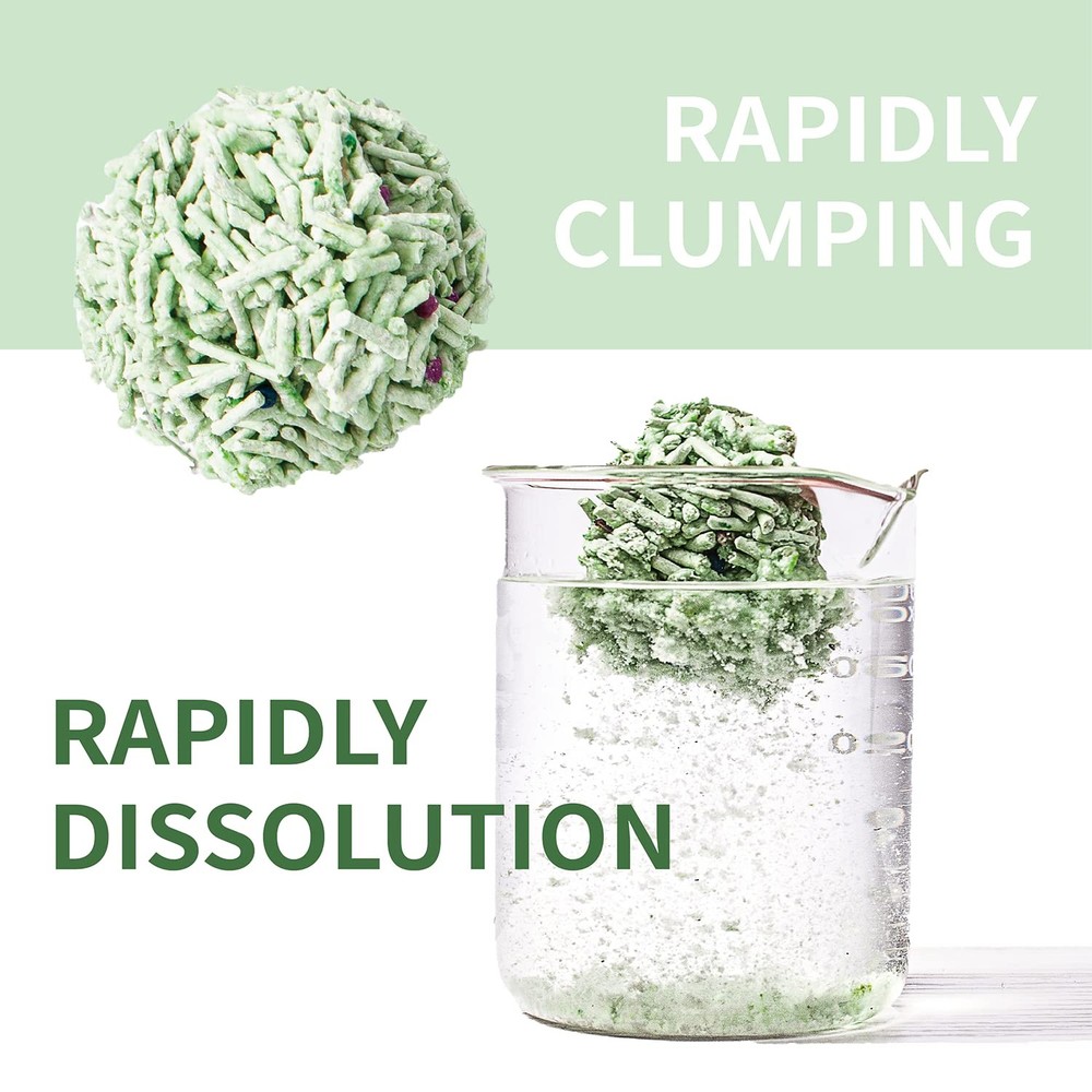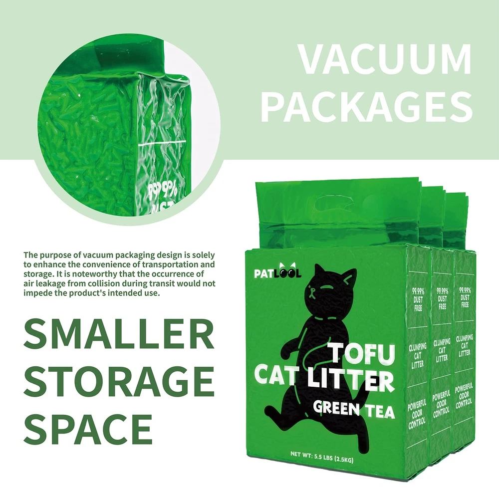 Pellets of tofu cat litter can clump together quickly and don't stick to the cat's paws. Forming solid clumps that are easy to remove without crumbling. Low-tracking cat litter that has been filtered to ensure that there is no longer a dust cloud when it is added to the litter box, safeguarding your cats [Clumping cat litter] Pellets of tofu cat litter can clum together quickly and don't stick to the cat's paws. Forming solid clumps that are easy to remove without crumbling [99.9% Dust-Free] Low-tracking cat litter that has been filtered to ensure that there is no longer a dust cloud when it is added to the litter box, safeguarding your cats [Exceptional Odor Control] Green tea flavoring in tofu cat litter helps to control odors, so you won't smell bad when you come inside after a long day or when you wake up [Easy to Flush] You can find it very convenient to flush natural tofu cat litter down the toilet rather tossing it in the trash [Lightweight Cat Litter] For one ot more cats, the cat litter's superior absorption capabilities make it a great option. There is 5.5lb in every pack