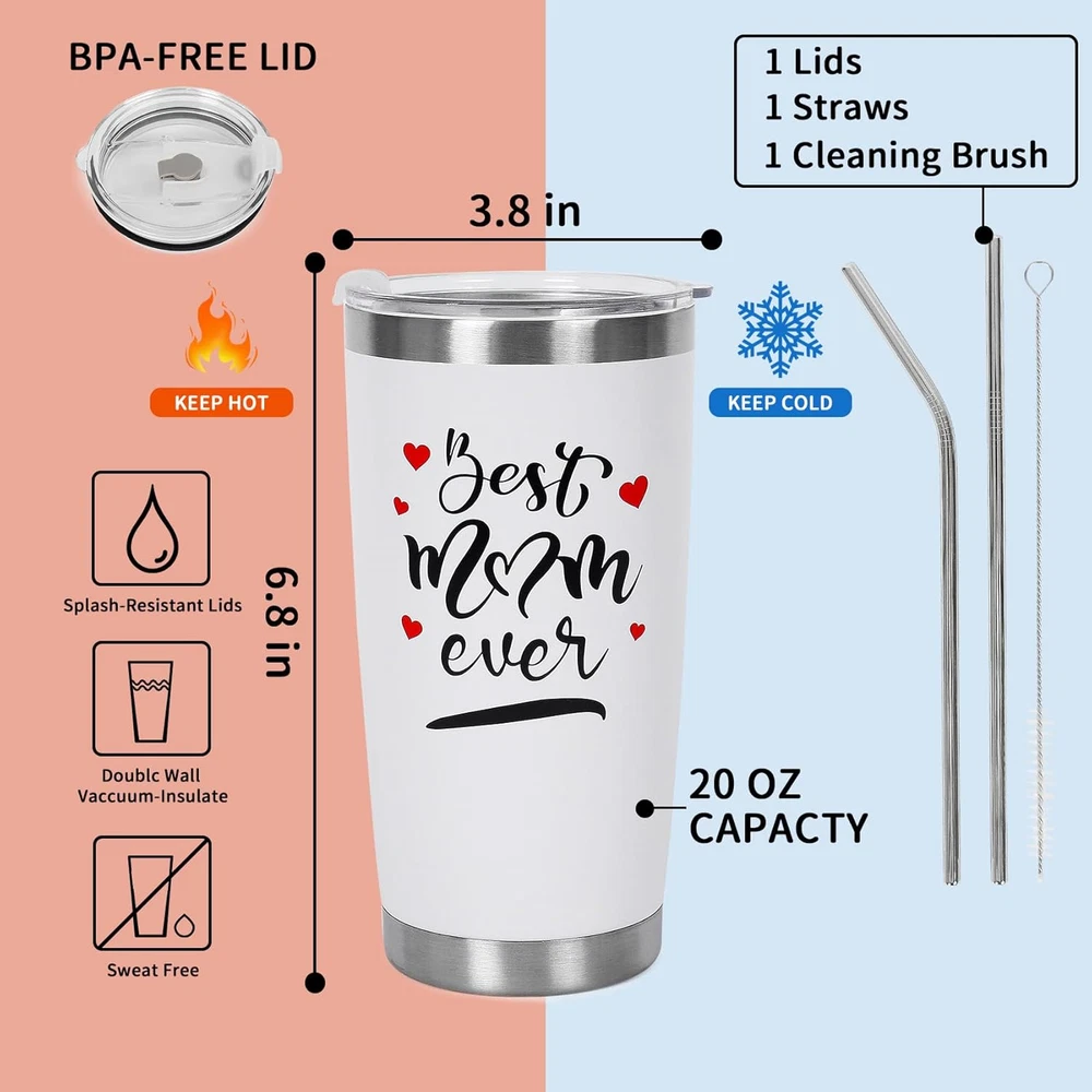 Store New Arrivals Add to Favorite View Feedback Contact Best Mom Ever Gifts Mom Tumbler Mug(White), 20 Oz Coffee Tumbler Cup Gifts for Mom from Daughter Son Gift for Women Christmas Gift for Wife Women Description Style Tableware Number of Items 1 Pattern Letter Print Country of Origin China Theme Holiday Unit Count 1.0 Count Product Dimensions 3.5"W x 8"H Material Stainless Steel Capacity 1.3 Pounds Package Type standard packaging Age Range (Description) Adult Finish Type Glossy Specific Uses For Product Cold Drinks, Hot Drinks Included Components Lid Reusability Reusable Item Weight 11.3 ounces Material Feature Insulated Occasion Christmas Special Feature Vacuum Insulated Color best mom ever-white Shape Round Recommended Uses For Product Home Manufacturer ONEVIVE Brand ONEVIVE Product Care Instructions Hand Wash Only Best Mom Ever Gift: Looking for the perfect Christmas gift for mom? Look no further! Our humorous coffee mug serves as a loving reminder of your affection and highlights her incredible awesomeness. Add a touch of joy to daily sips: Maintain the flavor of your drinks. Enjoy beverages at optimal temperature with 20 oz double-wall vacuum insulation. Versatile Design: Spill-resistant lid for worry-free indoor and outdoor use, making it a great companion for all occasions. Durable Tumbler with Lid and Straws: Premium construction ensures longevity, making it an ideal gift choice for both men and women. Heartfelt Appreciation: Show your gratitude on special occasions, birthdays, and holidays with this thoughtful and stylish present. Product Description ONEVIVE Mom Tumbler Christmas Gift Best Mom Ever Gifts ABOUT US We offer the best prices around on high quality products. Our E-store includes media such as books, movies, music and games while offering electronics, toys, sporting apparel, clothing, tools, general home, garden items and more. SHIPPING We are always working hard to ensure your package arrives as soon as possible. Please understand that some factors like weather, high postal traffic, and the performance of shipping companies are outside of our control. We offer free shipping to the lower 48 states and ship within 2 business days of payment, usually sooner. We do not accept P.O. Boxes. Please provide a physical address. RETURNS We offer a 30-Day Return Policy on items which you are not completely satisfied with. You have the option for a full-refund or an exchange of the item. No returns are available on items shipped outside of the USA. PAYMENT We accept PayPal. CONTACT US This page content is yet to come Please ad us to your favorite seller and visit again later Thank You CUSTOMER SATISFACTION We try our very best to make sure every customer is completely satisfied. If there's a problem, message us! We're happy to help.