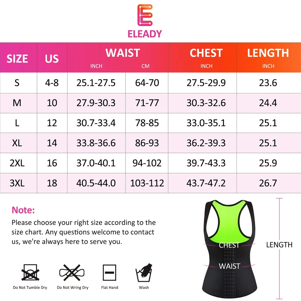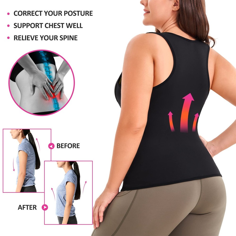 Do you want to lose weight quickly? Do you want your belly fat exercise into muscle? Do you want to own a perfect heathy figure? We totally understand the struggle to lose weight or fitness,you have to take too much time to do much exercise,but the effect is not ideal. Waist Cincher is designed to maximize the effectiveness of your workout and fat burn ,make you get twice the result with half the effort. Functions: Provides instant abdominal compression for tummy control. Increased thermal activity, Mobilizes fat cells, Stimulates perspiration, Midsection control. Ideal for aerobics and workout, accelerate weight loss by burning tummy fat . Lightweight, Comfortable,Stretchy fabric molds to your body for easy movement,skin-fit. Improve your overall well-being, help you correct posture. Can be used for yoga, belly abdomen corset etc . Wearing Occasions: Fat Burner Shapewear is perfect for yoga, running, weight loss or belly recover, any occasions you want to be slimmer. Ideal gift for best friend, waist training lovers. womens vest tops as ideal gifts for daughters, wife, and friends for Anniversary Day,Valentines Day and Birthday,Mother's day,or just as a surprise to remind that special one how much you care! Package Include: 1 x Womens Sweat Suit The tank top trainer is made of Neoprene for workout exercise, accelerating weight loss.The neoprene fabric will increase core temperature and keep your body warm,burn extra tummy fat by heating up your abdomen,also increase calories burner for a more effective workout,reducing your abdomen and waist. Vest weight with 4 hooks allows you to adjust the compression you need. This body trainer with underbust design which help the breasts push up,effective firm control of armpits and back flabby fat. Weight loss top also helps to support your lower back, wide straps will take the pressure off of your shoulders and instantly correct your posture. Double layer high compression design,the inner layer work as tuck belt flatten your stomach, trim your tummy waist.Outer layer compresses bulges on your abdomen to create smooth without rolling up,enhances your workout and shape your waist to be more slimmer,can be worn under everyday clothes. Maximize shape a hourglass waist with this waist cincher top ,acts like a compression binder around the waist to offer abdominal compression and lumbar support,improve posture,relief waist pain,protect spine. Exercise weights vest is great for reshaping postpartum recovery get your body back to its former post childbirth,create the best posture for healing. Wearing tips: The neoprene smell of the weight loss sauna suit is normal,it would be easy gone after a few times hand washes in cold water with a soft detergent , hang dry to maintain shape.