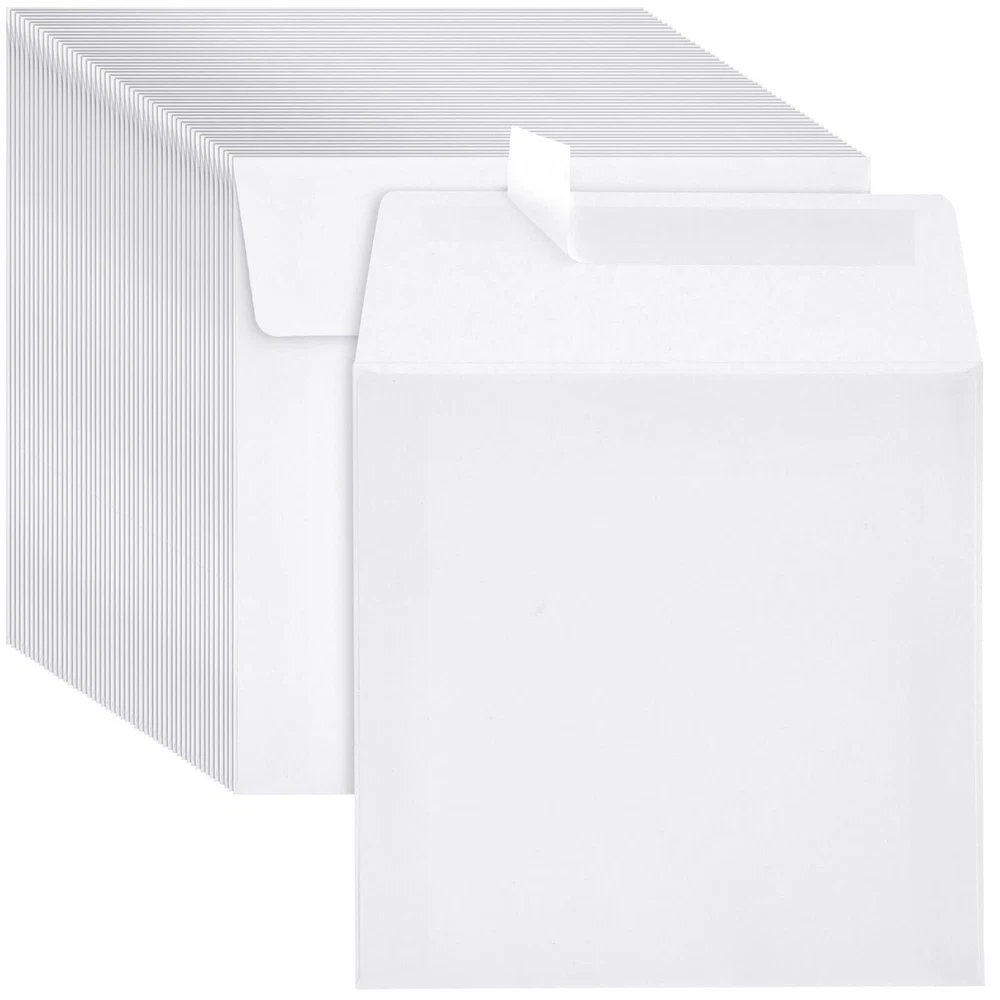 This 50-pack of square envelopes ensures you have enough for a large celebration or party or enough for the entire year. They are self-adhesive; all you need to do is peel-off-and-stick the adhesive on the envelopes to seal them. At 5.5 x 5.5 inches, they are great for sending invitations, gift cards, mail, photos, letters, CDs and DVDs, holiday cards, and announcement cards. Invitations Set: Our 5.5 x 5.5 envelopes are excellent for sending birthday, wedding, graduation, and baby shower invitations Multi-Purpose: They are also great for sending holiday cards, CDs and DVDs, gift cards, photos, letters, personal and direct mail, and announcement cards Quality: The envelopes are made with 120gsm thick paper; simply peel-off-and-stick the adhesive on the 5x5 envelopes square to help secure their contents Dimensions: The envelopes are 5.5 x 5.5 inches, and fit cards that are 5 x 5 inches or less Bulk Set: You will receive 50 white square envelopes 5.5 x 5.5 inches