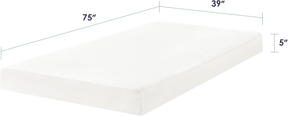 Best Price Mattress 5 Inch Memory Foam Mattress, Cooling Gel 5 Inch, White Product Details Item Weight: 17.15 pounds Product Dimensions: 75 x 39 x 5 inches Item model number: GFM-5T Brand: Best Price Mattress Size: 5 Inch Product Dimensions: 75"L x 39"W x 5"Th Top Style: Gel Top Cover Material: Polyester Blend Number of Layers: 1 Fill Material: Gel Memory Foam Color: White Model Name: Best Price Mattress 5 Inch Gel Memory Foam Mattress, Cooling Gel Infusion, Twin Construction Type: Gel Foam Item WeightItem Firmness Description: 17.15 PoundsMedium Firm GEL-INFUSED MEMORY FOAM – Adapts to your body, offering personalized comfort and precise support BREATHABLE DESIGN – Enhances airflow to maintain a fresh, cool sleep environment FUNCTIONALITY FOR SMALLER SPACES – Ideal for compact living areas, such as dorm rooms, guest rooms, or youth bedrooms where a lower profile is needed COMPACT PACKAGING – Arrives compressed for convenient setup and expands to full size within 72 hours after unboxing Ideal for spaces where a lower profile is needed, the Best Price Mattress Memory Foam Mattress provides comfort, cooling, and support in a compact design. Perfect for dorm rooms, guest bedrooms, youth bedrooms, or other cozy spaces, the gel-infused memory foam adapts to your body, delivering personalized comfort while maintaining a cool sleep environment. Made with CertiPUR-US certified foams and an OEKO-TEX certified cover, this mattress offers peace of mind and lasting quality. It brings you an ideal balance of breathability and support to offer relaxation and rejuvenation night after night.
