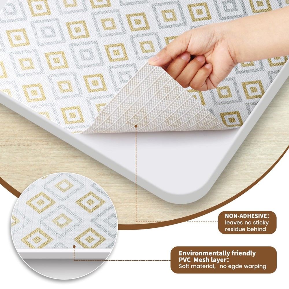Shelf Liners for Kitchen Cabinets Non-Adhesive, Cabinet Liners for Shelves, Drawer Liners for Kitchen Cabinets,10" X 120" Strong Grip Waterproof Thick Washable Mat For Cupboard Bathroom Dresser Pantry, Gold Geometry Transform your shelves with this elegant gold and silver geometric pattern. Keep your precious items safe from scratches, stains, and spills while adding a touch of style to your space. Say goodbye to messy cabinets with these non-slip liners that provide a strong grip for all your pots, pans, and dishes. Keep everything in place and protect your cabinets from damage effortlessly. Give your drawers a makeover with these washable mats that are easy to clean and maintain. Enjoy organized and neat drawers without the hassle of constantly rearranging items. Upgrade your cupboards, bathroom cabinets, shelves, dresser, or pantry with these waterproof liners that offer durable protection against moisture and dirt. Keep your storage spaces looking fresh and new for longer. Save time and effort by simply washing away any spills or stains on these thick liners. Enjoy a low-maintenance solution to keeping your drawers and shelves clean and beautiful at all times. Shelf Protector liner : The thick shelf liner is made of top quality PVC material, BPA FREE, durable to protect the surfaces from scratches, spills, and general wear and tear, order in your living spaces. Ease of Cutting and Installation: shelf liners for kitchen cabinets non-adhesive, Can be cut into desired shapes and size, easy to use and install. The cabinet shelf liner perfect solution for organizing your shelve, drawer, cupboard, refrigerator, countertops,closet. Double-Sided Non Slip Design: Strong Grip kitchen Shelf Liner enhances the friction between shelf liners and other items. Keeps items in your kitchen cabinets,kitchen drawer,shelving,bedroom dresser drawer,toolbox drawer,bathroom,fridge,shoes shelf in place. Non-Adhesive & No Edge Curling: shelf and drawer liners non adhesive, Allowed you to easily position and reposition the liner without leaving any sticky residue on your cherished furniture surfaces. non adhesive shelf liners has non-curling edges to ensure a neat and attractive finish for any surface. Waterproof & Ease of Cleaning: Kitchen cabinets liner waterproof,Oil proof. Waterproof shelf liner providing the ultimate protection for furniture against stains.Removable and washable,easy to wipe down, keep shelves and cabinets clean and dry.