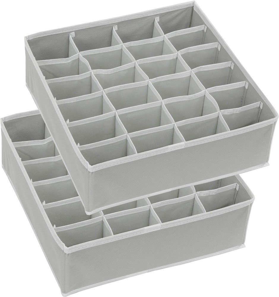 2 Pack - Closet Sock Organizer, 24 Cell Drawer Divider, Gray Good for organizing your socks, underwear, ties and etc... Made with non-woven fabric Easy to access your small items and keep your drawer nice and neat. The containers are collapsible that save your space. Lightweight solution for easy carrying. Dimension:12" X 12" X 3.5"H