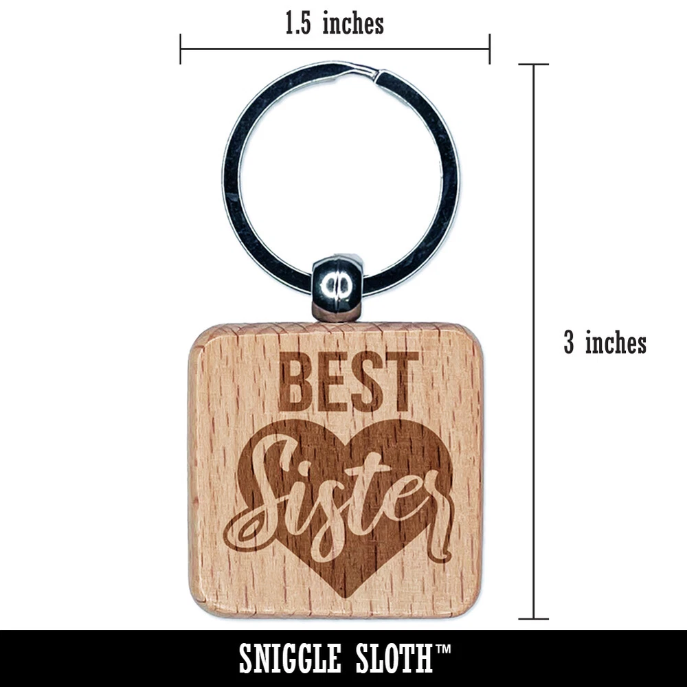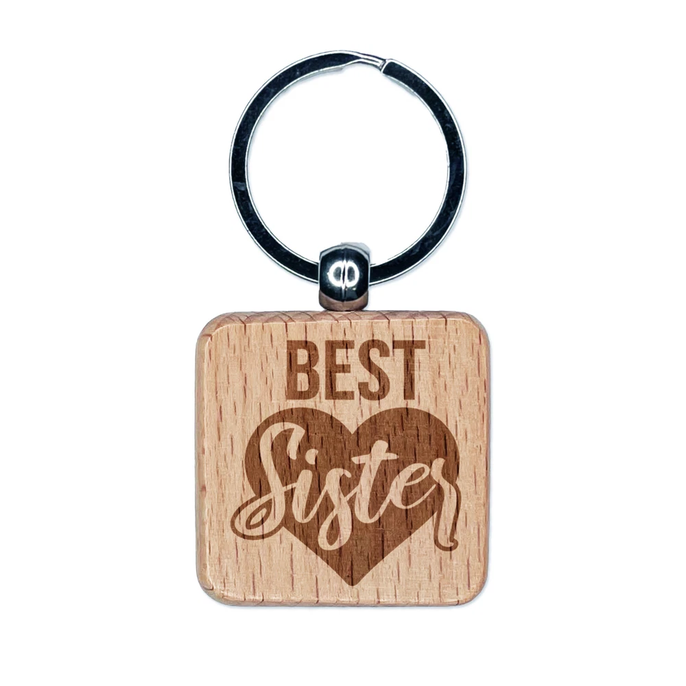 Best Sister in Heart Engraved Wood Square Keychain Tag Charm