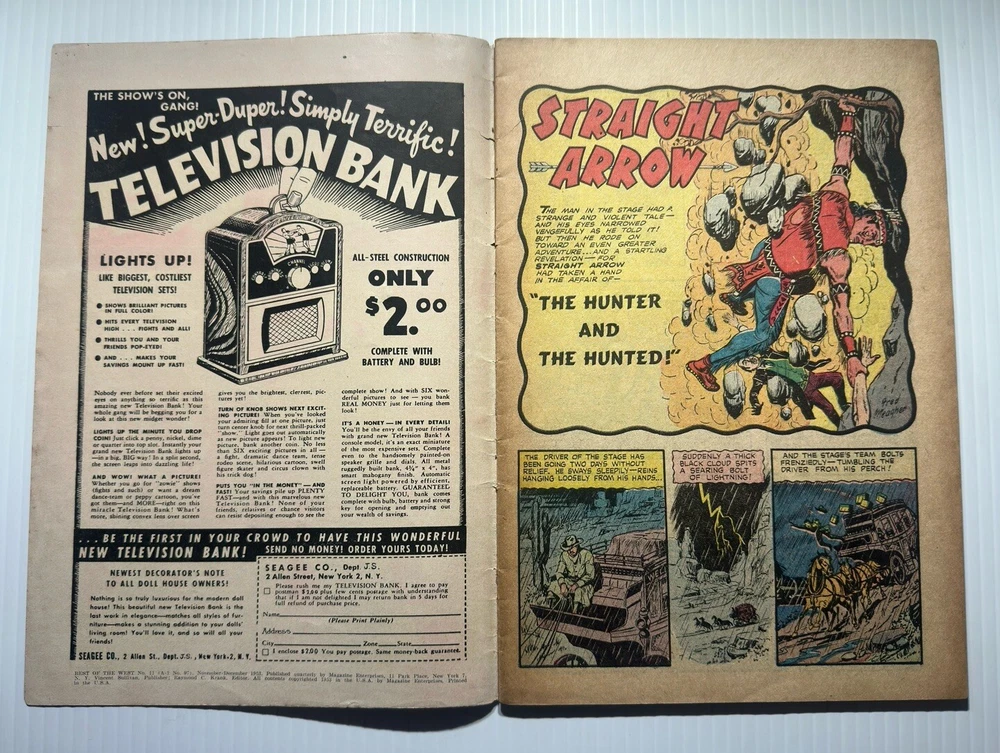 Character: Ghost Rider, Durango Kid, Tim Holt, Straight Arrow Series Title: Best of the West Vintage: Yes Grade: 5.0 Very Good/Fine Genre: Western, Action, Adventure Type: Comic Book Issue Number: 11 Format: Single Issue Artist/Writer: Golden Era: Golden Age (1938-55) Tradition: US Comics Publisher: Magazine Enterprises Publication Year: 1953