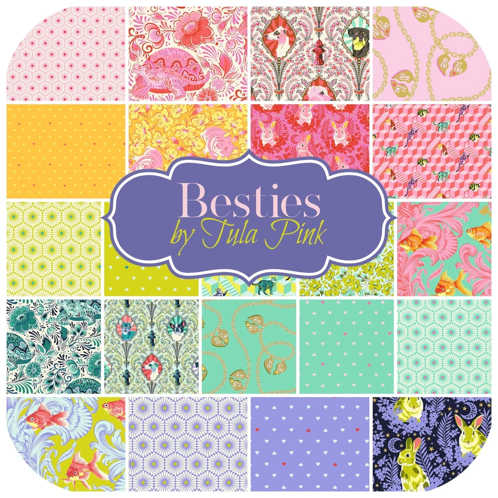 Designed by Tula Pink for , this fat quarter bundle includes 22 - 18 x 21 inches (45.72 cm x 53.34 cm) fabric cuts from the Besties collection. There are 22 different fabrics in this collection. All fabrics are 100% cotton and quilt shop quality. This bundle was put together and machine cut in house. Our manufacturing team uses the latest technology to guarantee the most accurate cuts. 100% quilters cotton, approximately 18 x 21 inches (45.72 cm x 53.34 cm) fabric cuts 22 fabric cuts - other sizes available Perfect for high quality quilt tops. This fabric is the top of the line. This is the same high quality fabric you would find at the best quilt shops. Package includes 22 fabric cuts. Bundles may be folded together when delivered. We find the bundles travel better and require less ironing. The images are of the actual product taken in our photo studio. We do not alter the images. However, due to monitor display differences, the color may not look identical when you receive the product. We are confident that every collection is worth having. Happy quilting.
