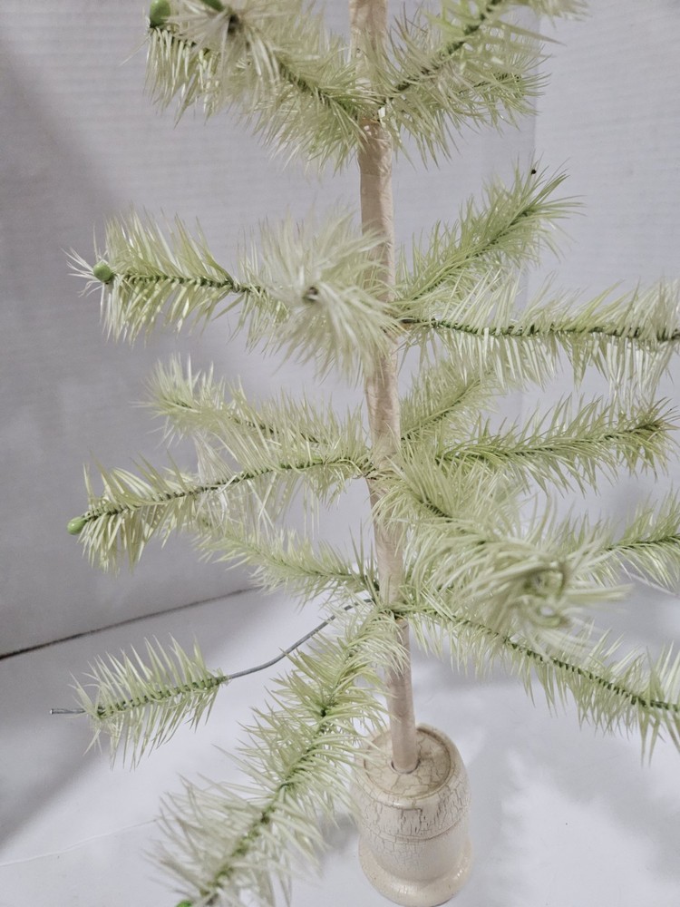 Its a beautiful light green 18" tree. Some of the beads are missing on end of a few of the branches but the branches are intact and look as they should. 1 limb that is pictured is missing some of its foliage and bead. Its truly a sweet tree and is really neat! Free Shipping in U.S.
