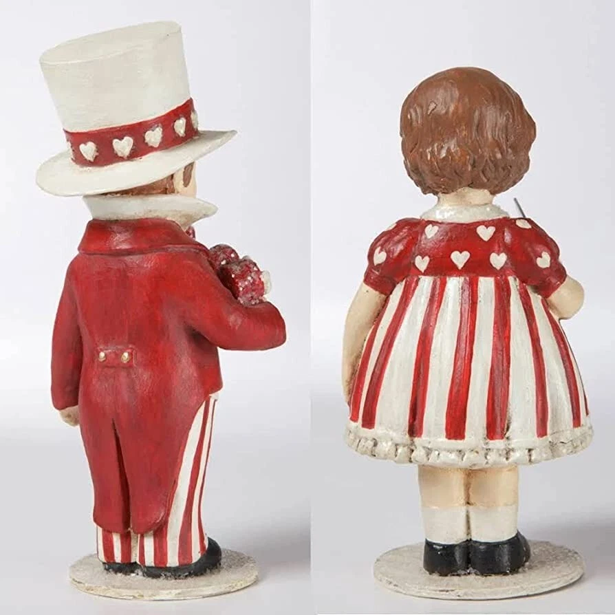 Bethany lowe valentine swethearts figurines ~~ Set of 2 ~~ What a great addition our " Valentine Sweethearts ” figurines would make to your Valentine’s Day decorations! They would put the finishing touches to your holiday display! ~~ Made of Resin / Wire / Glitter . ~~ Measurements : Boy à 5 ½” Tall x 2 ½” Wide x 2” Deep and Girl à 4 ½” Tall x 2 ½” Wide x 2 ¼” Deep ~ great size for decor . Designed with that classic Bethany Lowe style that will adorn your home for years to come. ~~ Set includes one each of the Girl & Boy Valentine Swethearts Figurines . If you love this figurines, check out our other Bethany Lowe figurines and pieces. Have a great day and thanks for browsing!