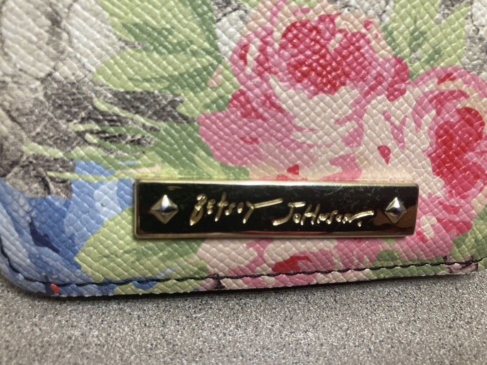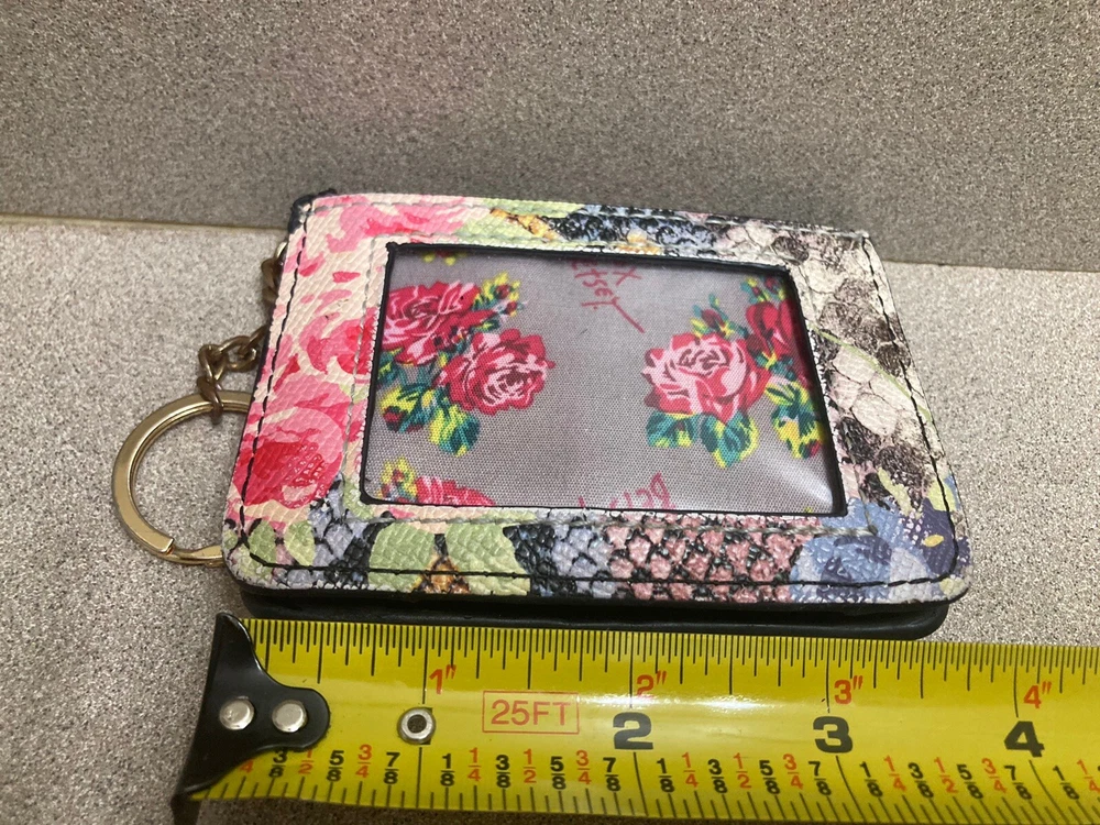 Betsey Johnson Floral Red Roses Detail Credit Card Case Holder Keychain Wallet. Pre-owned. Good Condition