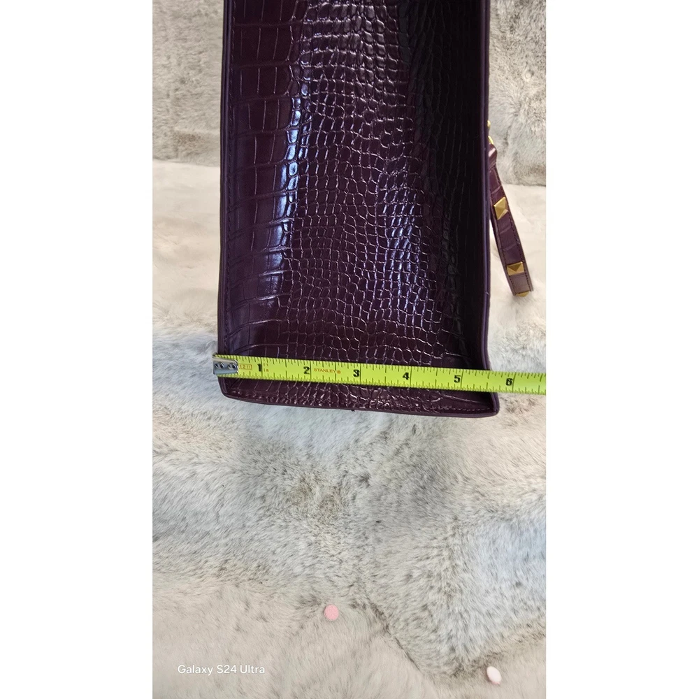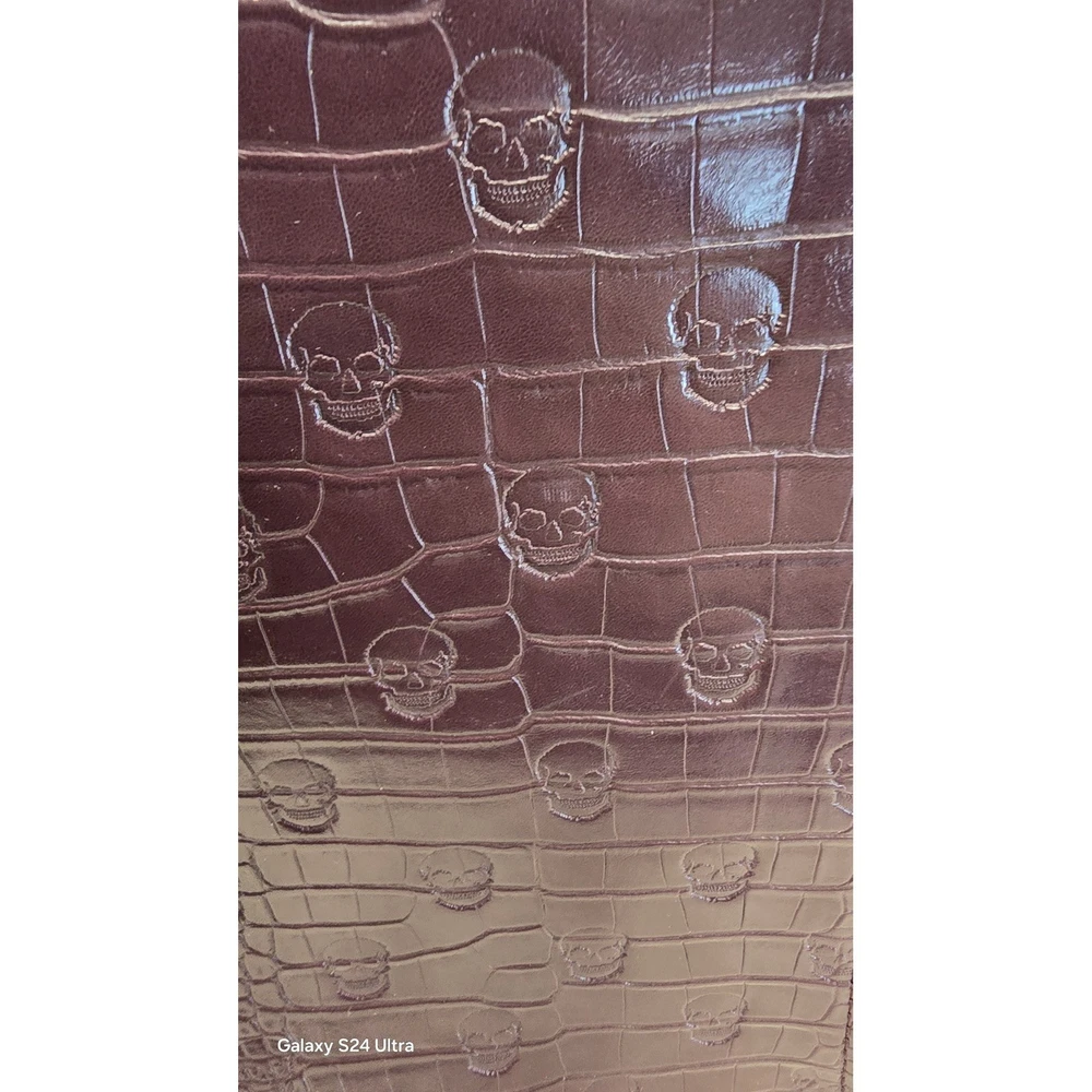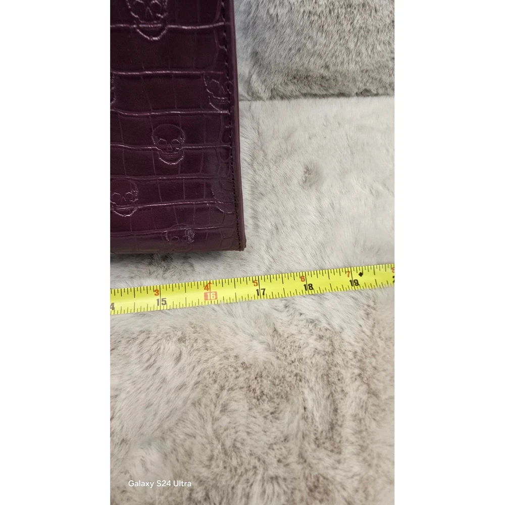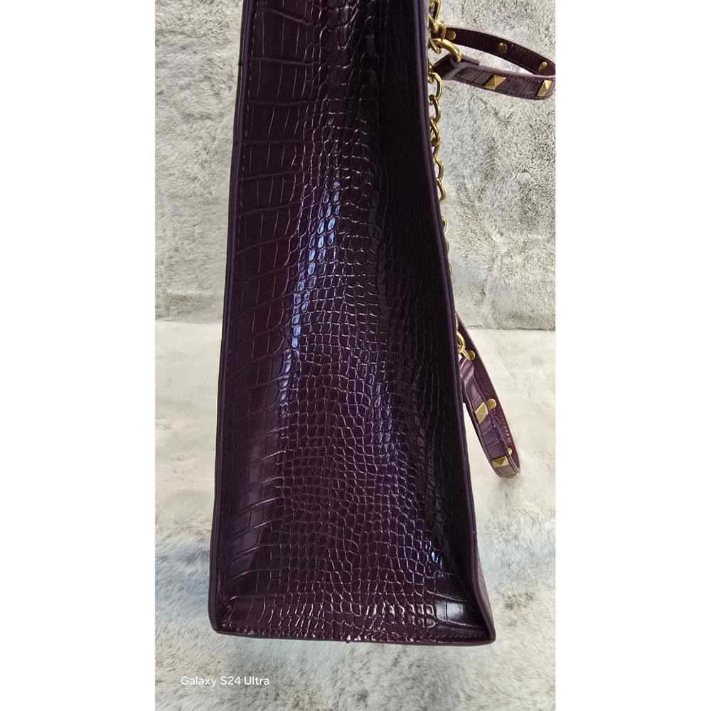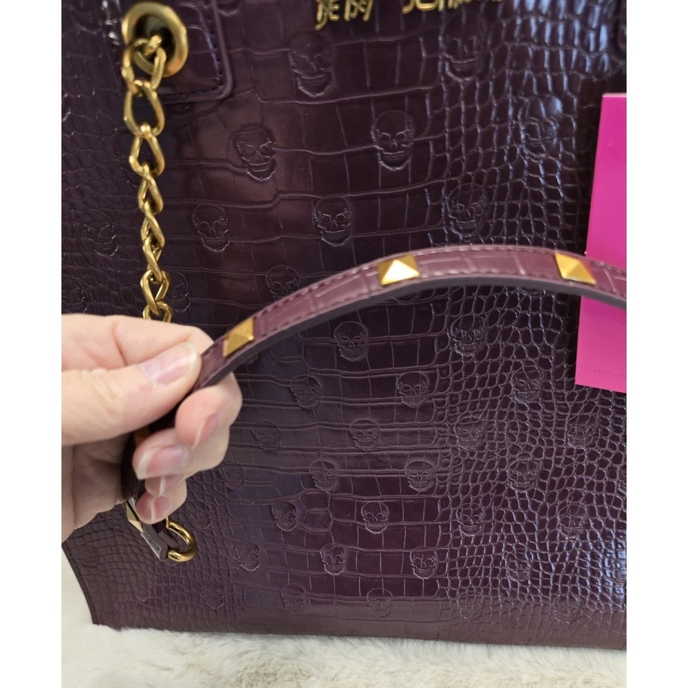 Betsey Johnson Plum Skull Embossed Croc Tote Bag – Gold Chain Straps – NWT
