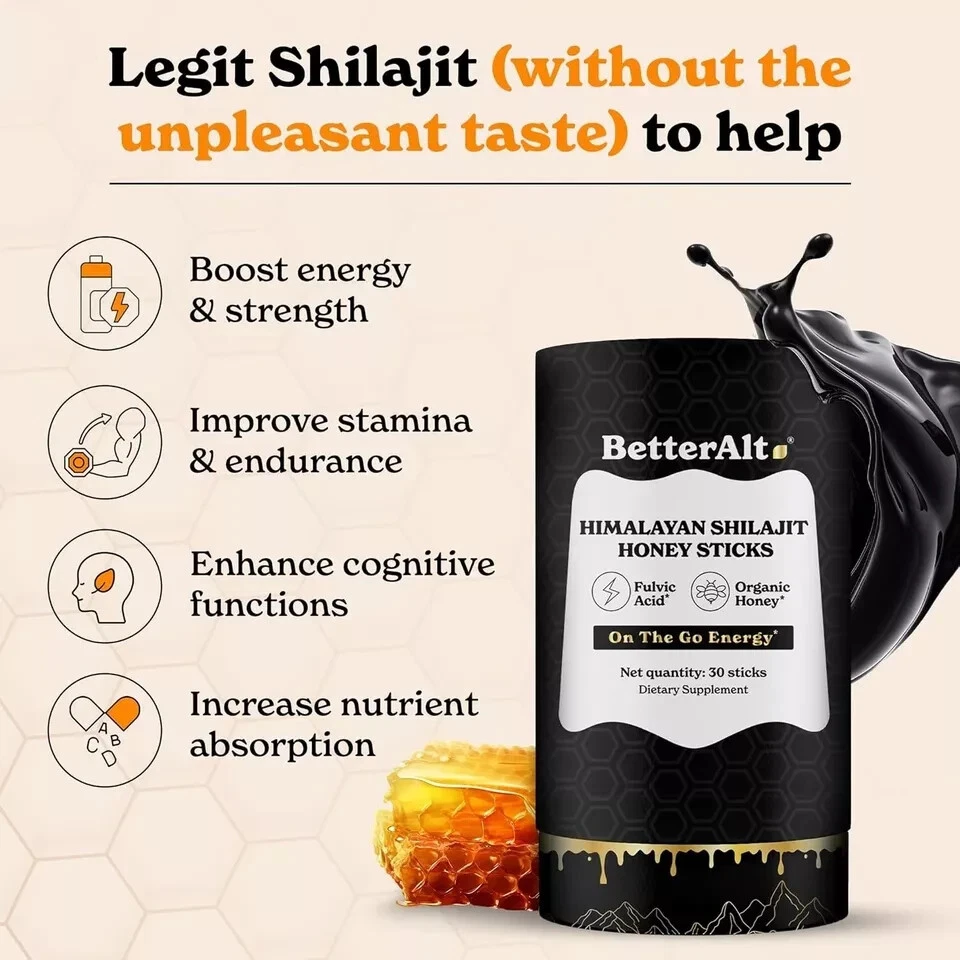 Better Alt Pure Himalayan Shilajit Sticks withOrganic Honey, Naturally Sweeter