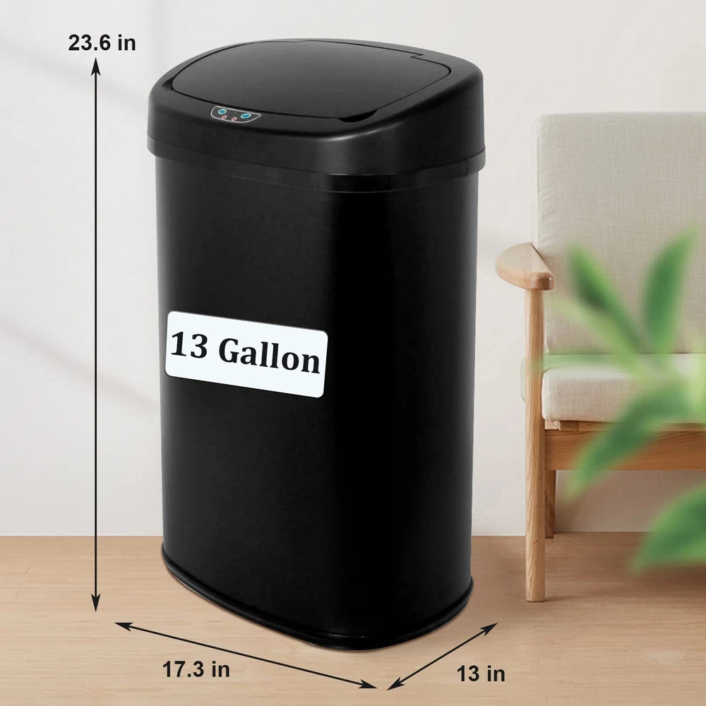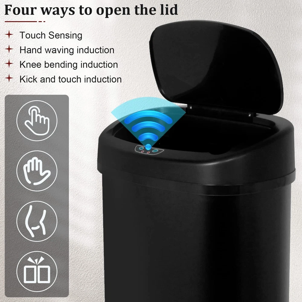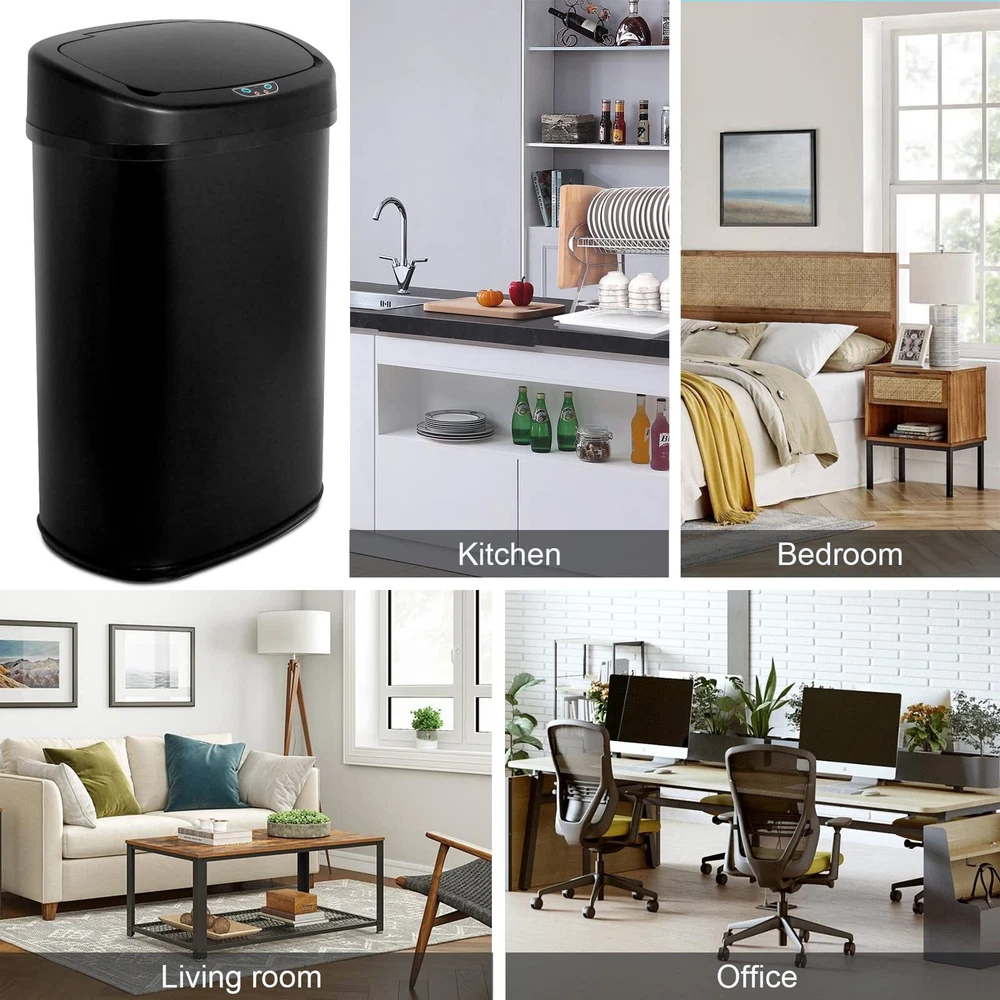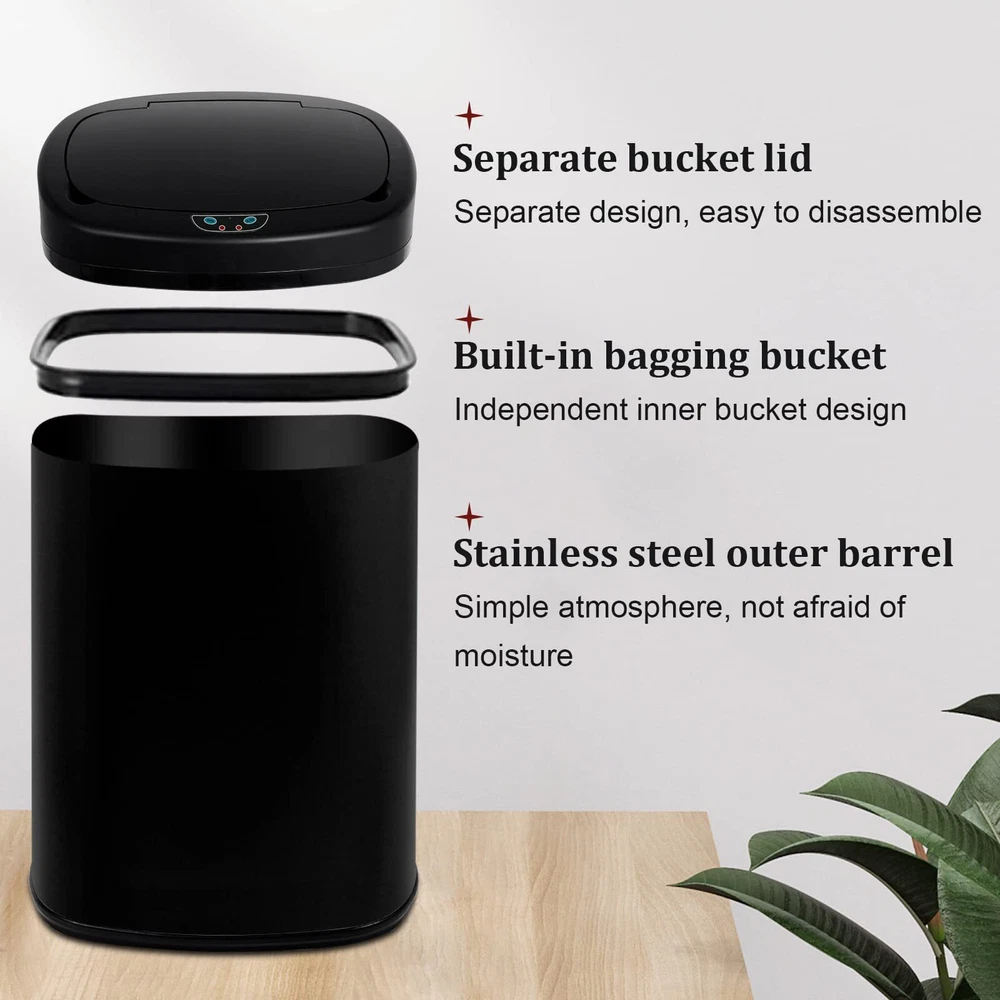Are you still looking for a trash can with smart sensor/touch sensor/easy to clean /adjustable distance/silent opening/closing/sealed lock smell???? ---Choose Better Choicet with confidence, we will produce the best trash can for you. Features: Intelligent control------Brand new upgrade one-key intelligent control, the design and performance is more reliable. Sealed design-----The sealed design has no peculiar smell, truly achieves zero contact, keeps bacteria away and is more hygienic 4-step bagging-----easy operation to replace the garbage bag, allowing you to easily enjoy your smart life. Wide range of use-----Suitable for all occasions, kitchen, bedroom, living room, you can use them anywhere you can think of. Perfect Package-----Each of our trash can is packed independently, and there are several layers of cardboard outside to ensure that there will be no damage during transportation. Specification Material:stainless steel Dimensions: 17.3''L x 13''W x 23.6''H Weight: 10 pounds Capacity: 13.2 gallon /50 liters Color: Red Batteries(no included): 4xD ?Auto-sensing?Kitchen trash can use infrared sensing technology to accurately capture your every movement in 0.3 seconds and automatically close the lid within 5 seconds after the trash is thrown in.The use process is truly non-contact, truly liberating your hands and feet, making waste disposal easier and more fun, and more hygienic and healthy. ?Mute setting?This stainless steel trash can adopts a new integrated mute setting. The smart chip controls the lid to slowly rise and fall, which will not disturb your work and rest. It is especially suitable for families with small babies. Let your child maintain a good state of sleep.Kitchen Trash Can Garbage Can Waste Bin Trash Bin ?Easy to clean and no odor?Kitchen trash can is treated with stainless steel wire drawing, which makes it very convenient to clean up the trash bin.The dirt on the surface of the stainless steel garbage can be easily removed with only a rag.Moreover, the garbage can has good sealing performance and can work continuously in harsh environments, which prevents the emission of peculiar smell and maintains a good environment. ?Applicable to various places? Anti-Fingerprint garbage can with beautiful and soft lines, giving people a clean and tidy vision. The exquisite structure design adapts to the decoration environment of most families, and can be placed in the kitchen, bedroom, living room, office and other places to perfectly form a stylish and charming landscape.Buying our stainless steel trash bin is a great deal for you. ?Professional service? We have focused on producing high-quality waste bin for many years, so the materials of our products are all selected high-quality materials.If you have any question,please feel free to contact us, we will reply to you within 24 hours and give you a satisfactory answer.Kitchen Trash Can Garbage Can Waste Bin Trash Bin Number of items: 1 Special features: Anti-slip