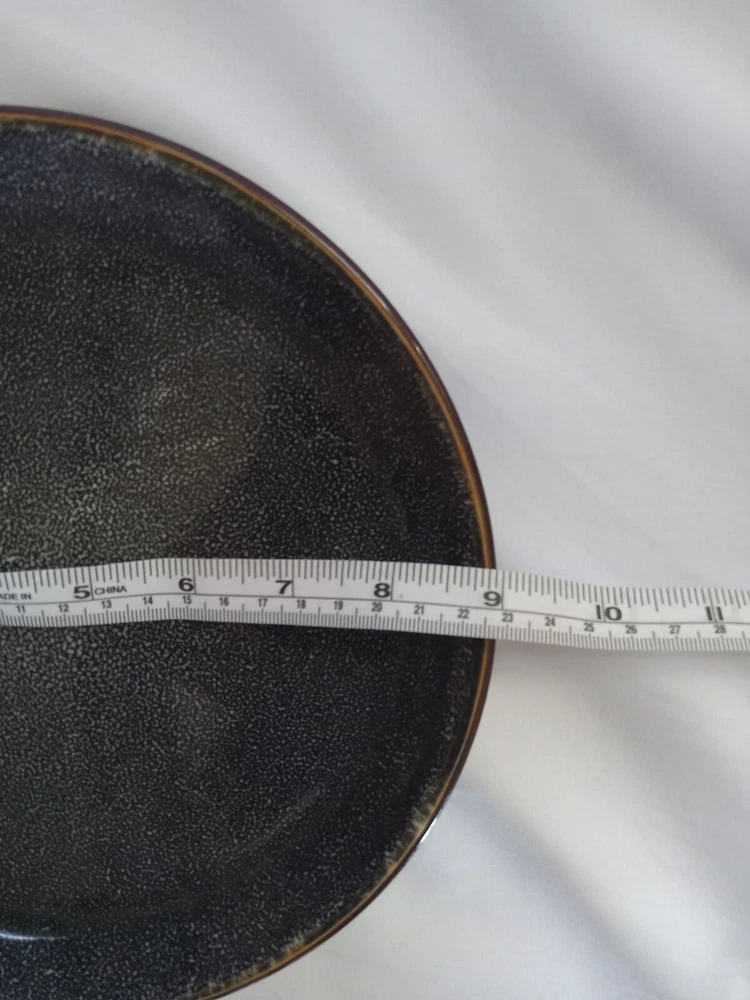 Item Width: 9" Vintage: No Set Includes: Salad Plate Product Line: better homes and gardens Pattern: spackled gtin13: Does not apply Material: Ceramic, Porcelain, Stoneware MPN: n/a Antique: No Production Technique: idk Number of Items in Set: 1 Production Style: idk Features: Dishwasher Safe, Microwave Safe Backstamp: Printed Department: Adult Theme: supper Color: Black Origin: Unknown Care Instructions: Hand Wash Only UPC: Does not apply Country/Region of Manufacture: Unknown Occasion: All Occasions Original/Licensed Reproduction: Original Handmade: No Type: Salad Plate Brand: Better Homes & Gardens Plate Diameter: 9" Shape: Round