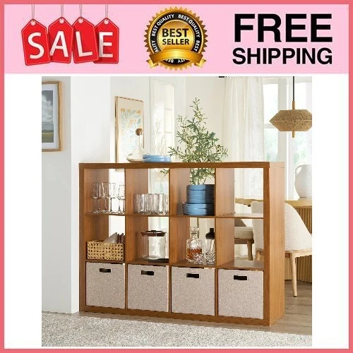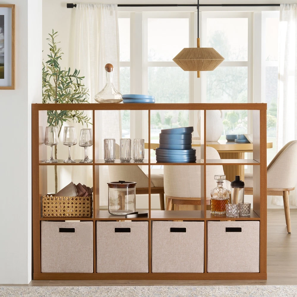 Add function and style to your home with the Better Homes & Gardens 12-Cube Storage Organizer. Available in multiple finishes, including both solid and wood grain options, this cube organizer features twelve 13" x 15" x 13" compartments, the perfect size to display books, collectibles, photos, artwork, storage bins and baskets. An open back design makes it easy to manage cords and cables. This sturdy bookcase can stand vertically or horizontally to best suit your needs and space. The top panel supports up to 100 lbs and each cube supports up to 30 lbs. Combine it with other Better Homes & Gardens Cube Organizers and Cube Storage Bins (sold separately) to create a complete, customized storage and display system. Easy to assemble with included wall attachment safety system, the Better Homes & Gardens 12-Cube Storage Organizer is perfect for your office, living room, den, playroom and more. Features twelve 13" x 15" x 13" compartments Modern, open back design for easy cord management Compatible with Better Homes & Gardens Cube Storage Bins (sold separately) Versatile design allows for vertical or horizontal placement Top panel can support up to 100 lbs and each cube supports up to 30 lbs Can be combined with other Better Homes & Gardens Cube Storage Organizers (sold separately) Materials: MDF, particle board Attaches to the wall with included safety strap Easily assembled by 2 people with included instructions and video assembly guide (hammer, Phillips head screwdriver & flat head screwdriver required) Finishes available: Textured White (BHD036118664036), Tobacco Oak (BHD036118664037), Rustic Gray (BHD036118664035), Light Honey (BH5336278612094), Charcoal (BH5336278612093) and Acorn (BH5336278612095) Site to Store Pickup Note: This item is packaged in one large box that may not fit in a standard-sized vehicle. Please make sure you have a large car or truck for store pickup. Package size: 63.03" x 9.45" x 18.11" (90.62 lbs) Assembled weight: 78.76 lbs Assembled dimensions: 57.4" W x 15.35" D x 43.35" H