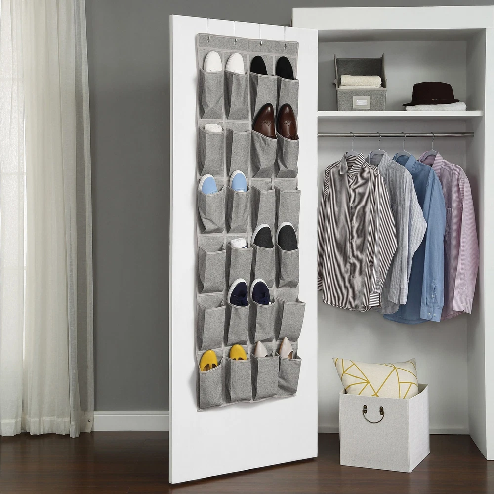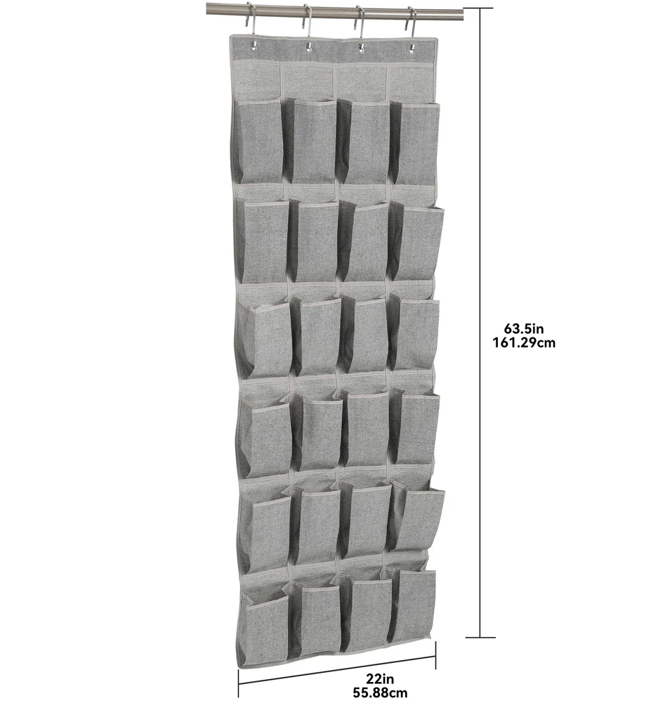 The Better Homes & Gardens 24-Pocket Over the Door Closet Shoe Organizer for adult can help you use virtually any interior door as potential storage space. This durably crafted fabric shoe organizer comes fully assembled and ready to hang on sturdy metal hooks and is perfect for bedroom, closet, and other doors, or can be hung securely off any closet rod. The organizer features 24 fold-out pockets to hold up to 12 pairs of your favorite footwear. The Better Homes & Gardens 24-Pocket Over the Door Closet Shoe Organizer is a great way to keep shoes, socks and other items organized, easily accessible, and off the floor. On Feb 15, 2025 at 00:32:49 PST, seller added the following information: