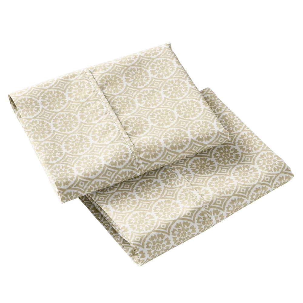 The ultra-soft, wrinkle-resistant Better Homes & Gardens 300 Thread Count Suzani Almond Biscuit Cotton Sateen Pillowcases provide a relaxing, comfortable sleep with style that fits all seasons and occasions. Crafted with 100% cotton fabric in a 300-thread-count, sateen weave, they are both extravagantly soft for comfort and durable enough for everyday use. Machine washable for easy care, the pillowcases also feature wrinkle-resistant properties for a clean, tidy look. Simple, classic style that complements any bedroom combined with super-soft fabric and long-lasting durability make the Better Homes & Gardens 300 Thread Count Cotton Sateen Pillowcases the ideal solution for all the bed pillows in your home. Ultra-soft, wrinkle-resistant bed sheet set provides comfortable sleep and style Includes 2 king-sized pillowcases Dimensions: 40"L x 20"W Classic style complements any bedroom and fits all seasons and occasions Crafted in a 300-thread-count, sateen weave Material: 100% cotton Oeko-Tex Made in Green certified meets high environmental safety standards, has been tested for harmful substances, and is made in socially responsible and safe workplaces