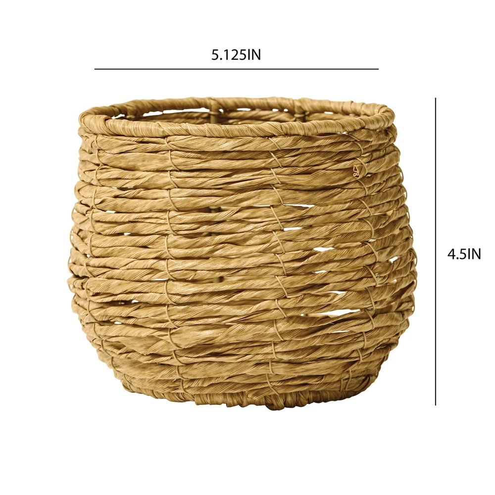 Elevate your indoor greenery with the Better Homes & Gardens 5" Woven Faux Seagrass Planter. This decorative planter features intricately woven faux seagrass to add organic texture and earthy tones for a relaxed look. This 5-inch planter is the perfect size for accommodating various indoor plants, from vibrant flowers to lush greenery. Versatile enough for any room in your home, this indoor woven planter adds a touch of botanical beauty to living rooms, bedrooms, kitchens, windowsills, and more. Mix and match with more Better Homes & Gardens vases and planters to create a stylish look with varying heights, colors, and shapes. Plant not included. Indoor decorative planter Features an intricately woven design Relaxed, earth style Made with faux seagrass Dimensions: 5.68-inch diameter x 4.5-inch height Perfect for accommodating various indoor flowers or plants Care instructions: Wipe clean as needed. Each decorative vase is sold separately Plant not included
