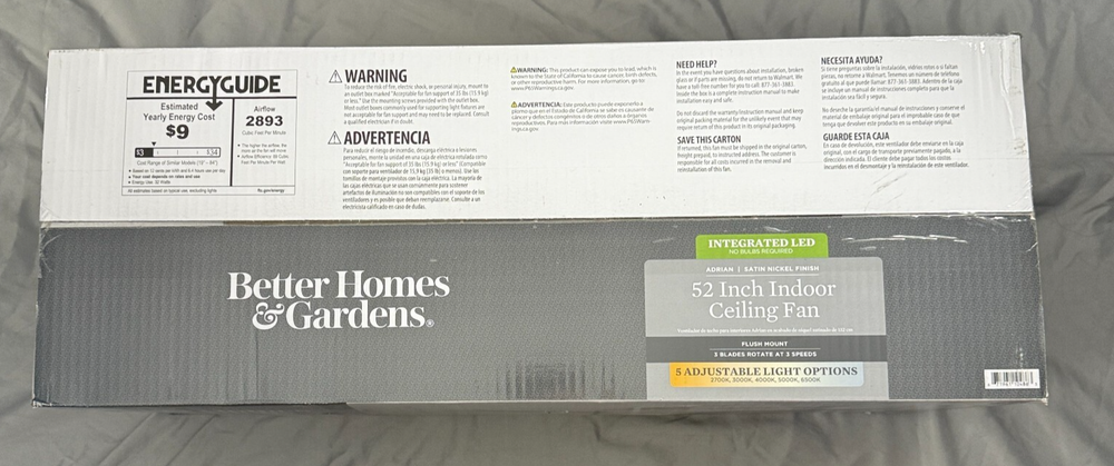 Better Homes Gardens 52-inch Modern Nickel Flushmount Ceiling Fan with Light - Brand New