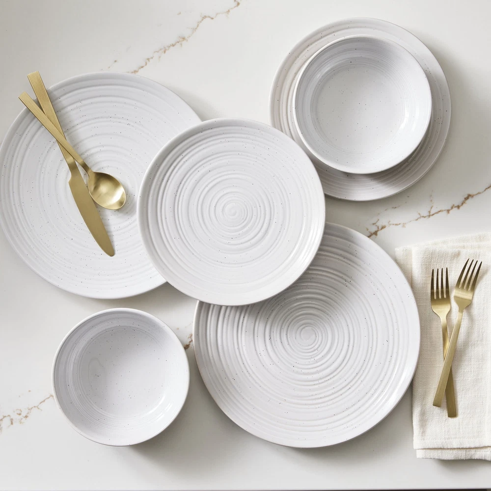 The Better Homes & Gardens Abbott Stoneware 12 Piece Dinnerware Set adds a warm, modern sophistication to all of your dinnertime gatherings. Crafted with high-quality, durable stoneware, this dinnerware collection features delicate speckles and exposed clay details that exude rustic charm. The contrast between the shiny, glazed stone and matte, exposed clay creates an artisanal flair that elevates any dining experience. Designed in beloved neutral tones, this set easily complements just about any home decor style. On Dec 2, 2024 at 00:54:42 PST, seller added the following information: