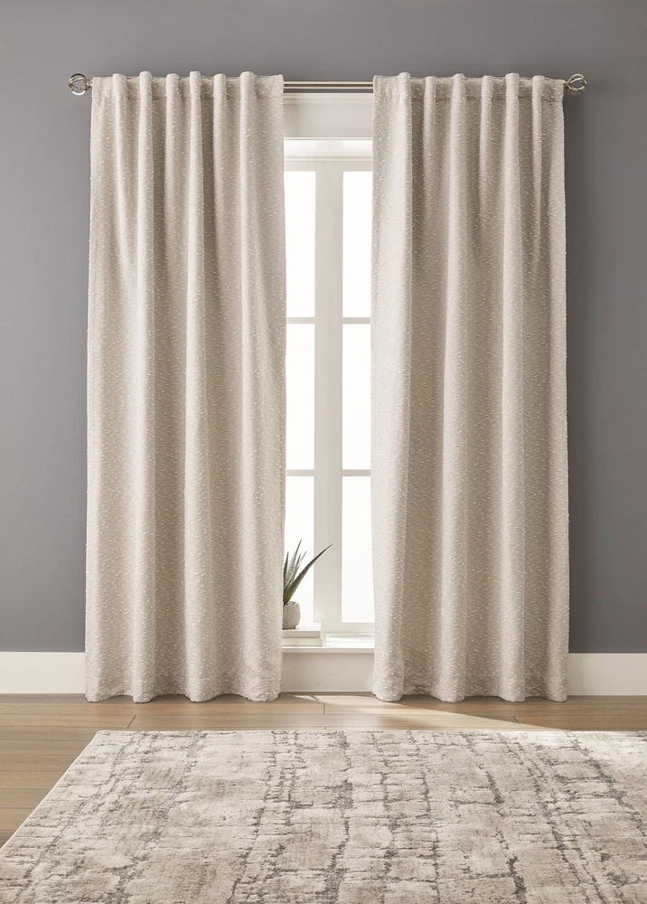 The Better Homes & Gardens Boucle Single Window Panel is a perfect fit for any room. The rod pocket style is easy to hang and features a blackout technology that offers light blocking benefits that help conserve energy—also perfect for a bit more privacy, sleeping in or mid-day movie marathons. This single window panel can help add a decorative touch to your living room, bedroom, family room or home office, crafted in textured polyester boucle material that’s machine washable for easy care. On Feb 15, 2025 at 00:16:54 PST, seller added the following information: