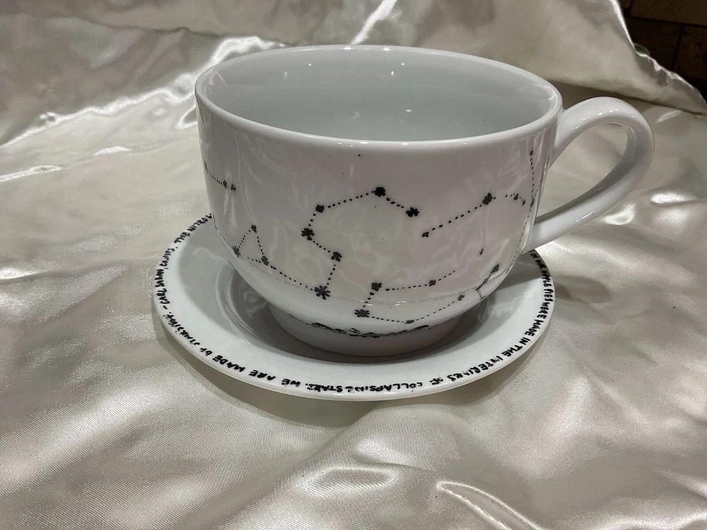 Upgrade your morning routine with the Better Homes & Gardens Celestial Coffee Soup Latte Mug Cup, designed to bring a touch of the cosmos to your kitchen. This 16 fl oz ceramic mug features a hand-painted celestial stars pattern, giving it a unique and modern style that's perfect for any occasion. The set includes a mug, perfect for your favorite hot beverages, and a matching saucer to complete your coffee or latte experience. Crafted with care and detailed artistry, this two-piece set is sure to be a conversation starter at any gathering. Enjoy your solitary coffee time or share the wonder of the stars with a friend.