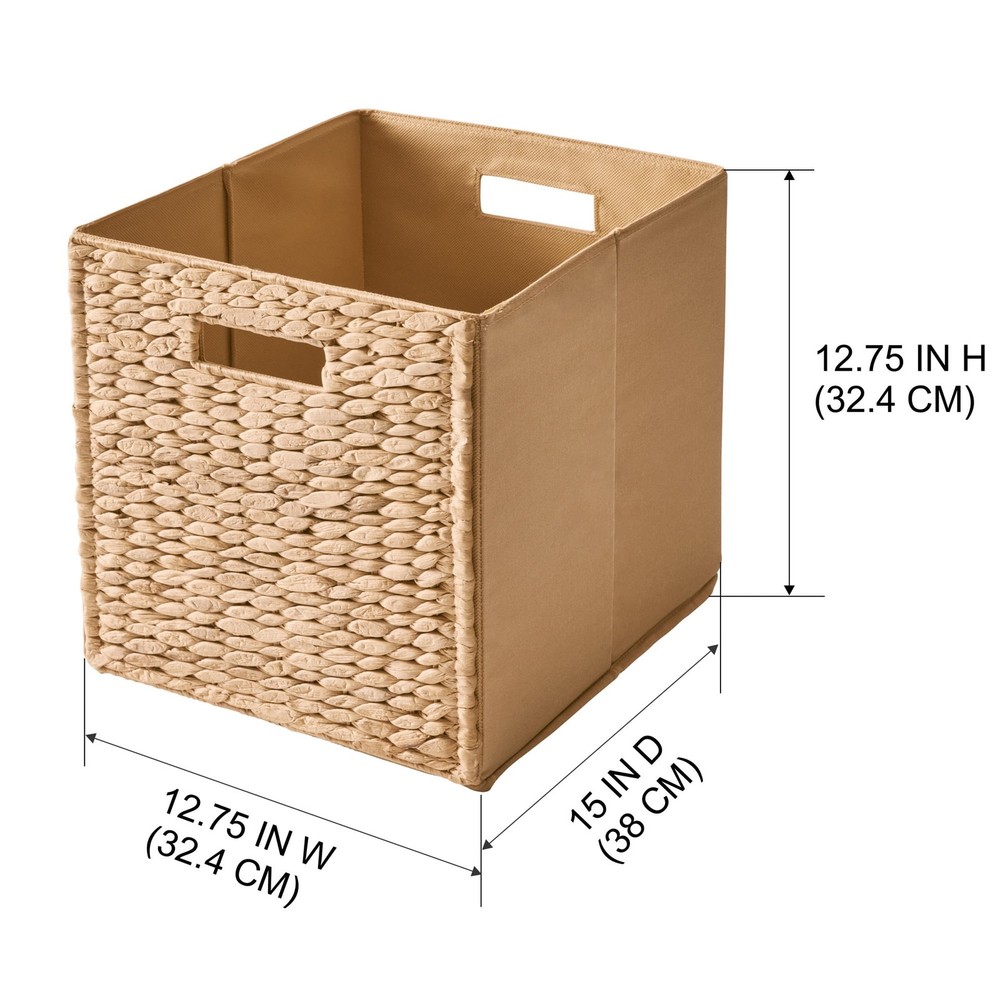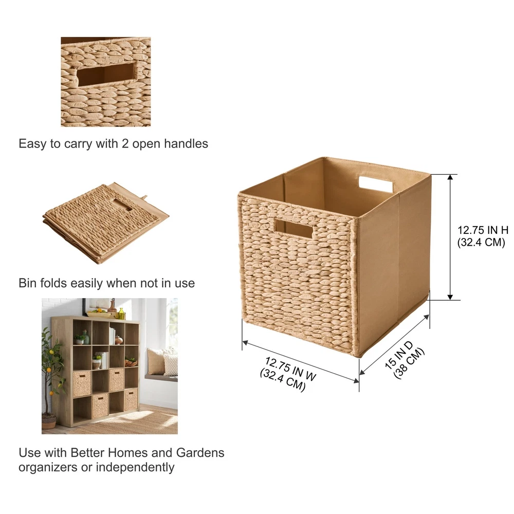 These Better Homes and Gardens Cube Storage Bins are a versatile and indispensable item for your home, office or small business. You can use them to store documents, files, toys, electronics, supplies, small equipment, kids to adult clothes and much more. This storage bin measures 12.75" x 12.75" x 15" with two handles to make it easy to carry and transport them. With a variety of colors to choose from, you'll be able to perfectly match your home decor when you get organized with our Better Homes & Gardens Fabric Cube Storage Bins. Bins feature two cut-out handles that makes it easy to take the bin wherever you go Ideal for storing books or kids and adult clothing in the bedroom, living room, laundry room or dorm rooms Can be used with our Better Homes & Gardens cube organizers (sold separately) or independently Perfect for pairing with your favorite colors and patterns to mix and match Folds flat for storage when not in use Dimensions of storage bin: 12.75" Wide x 12.75" Height x 15" Deep