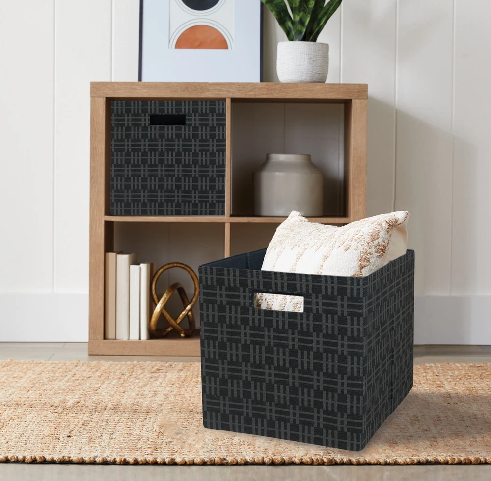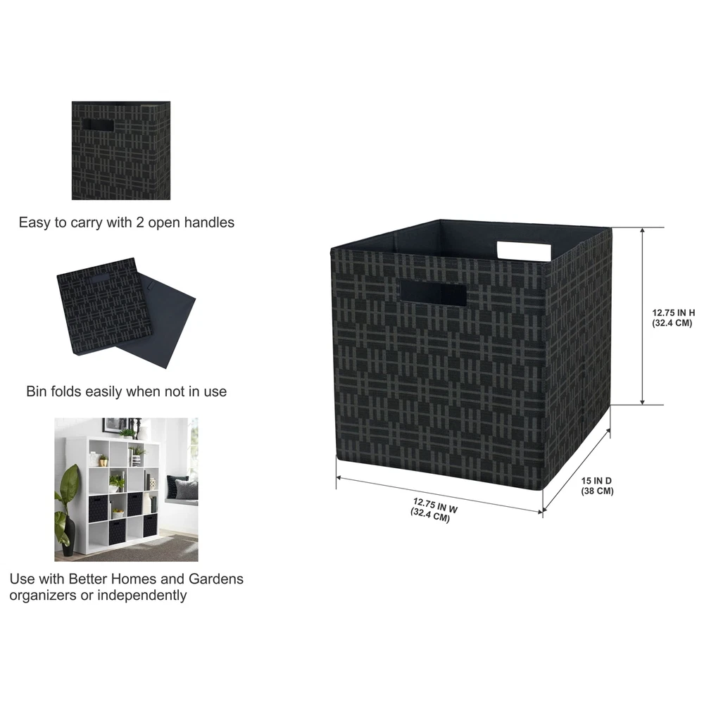 These Better Homes and Gardens Cube Storage Bins are a versatile and indispensable item for your home, office or small business. You can use them to store documents, files, toys, electronics, supplies, small equipment, kids to adult clothes and much more. This storage bin measures 12.75" x 12.75" x 15" with two handles to make it easy to carry and transport them. With a variety of colors to choose from, you'll be able to perfectly match your home decor when you get organized with our Better Homes & Gardens Fabric Cube Storage Bins. Includes 2 storage cubes Ideal for storing books or kids and adult clothing in the bedroom, living room, laundry room or dorm rooms Can be used with our Better Homes & Gardens cube organizers (sold separately) or independently Folds flat for storage when not in use Dimensions of storage bin: 12.75" Wide x 12.75" Height x 15" Deep