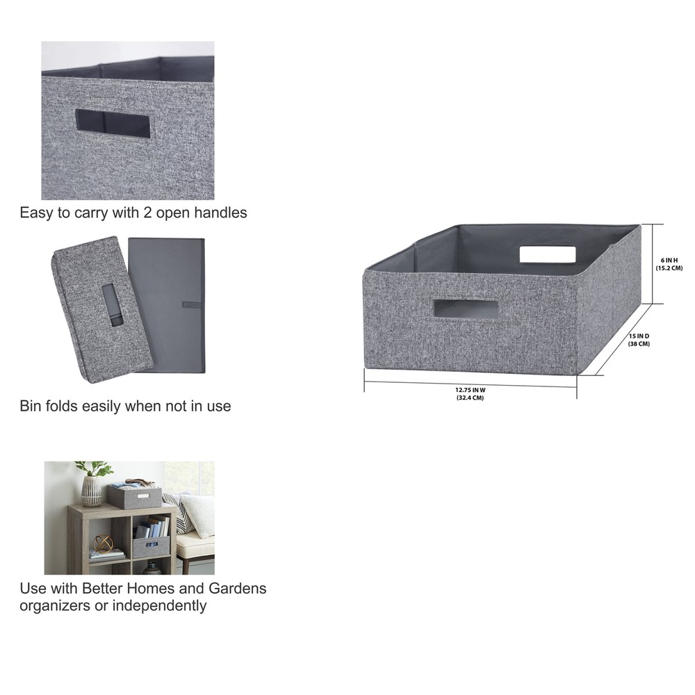 Better Homes Gardens Gray Fabric Storage Bins 2-Pack Half-Size