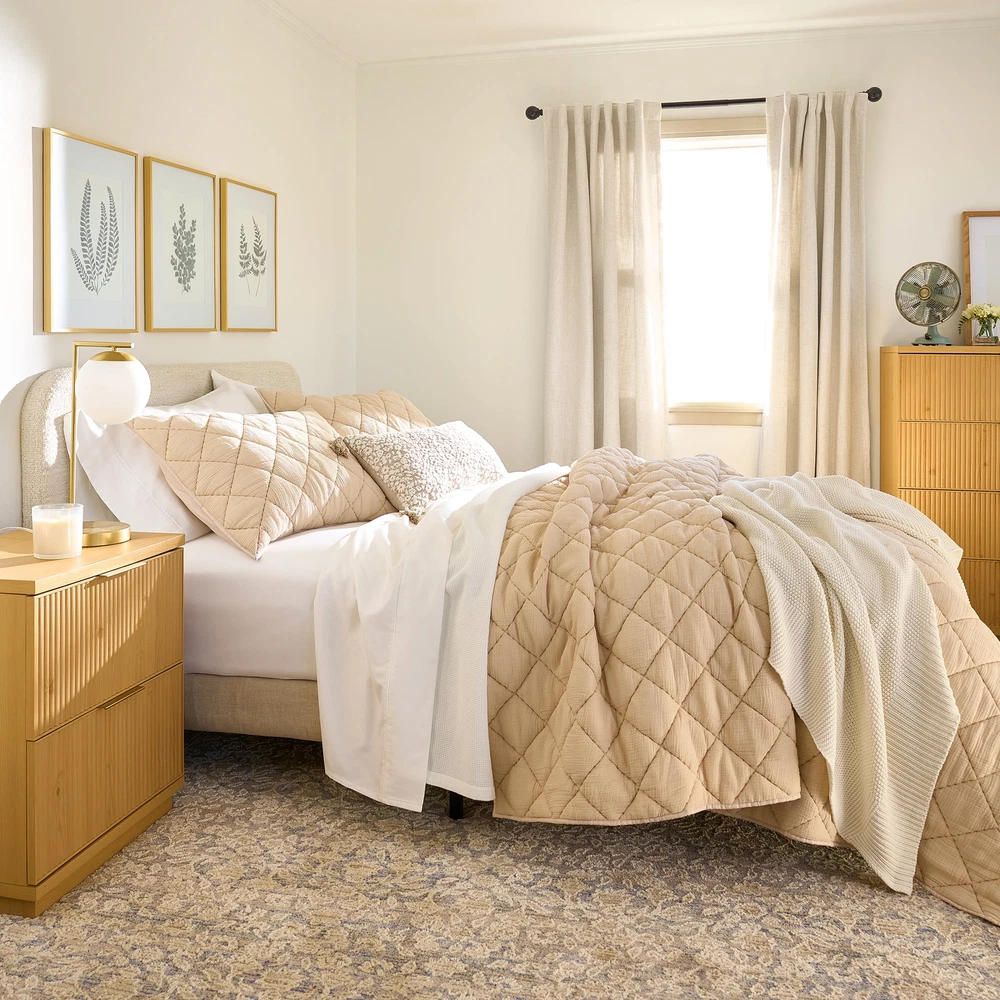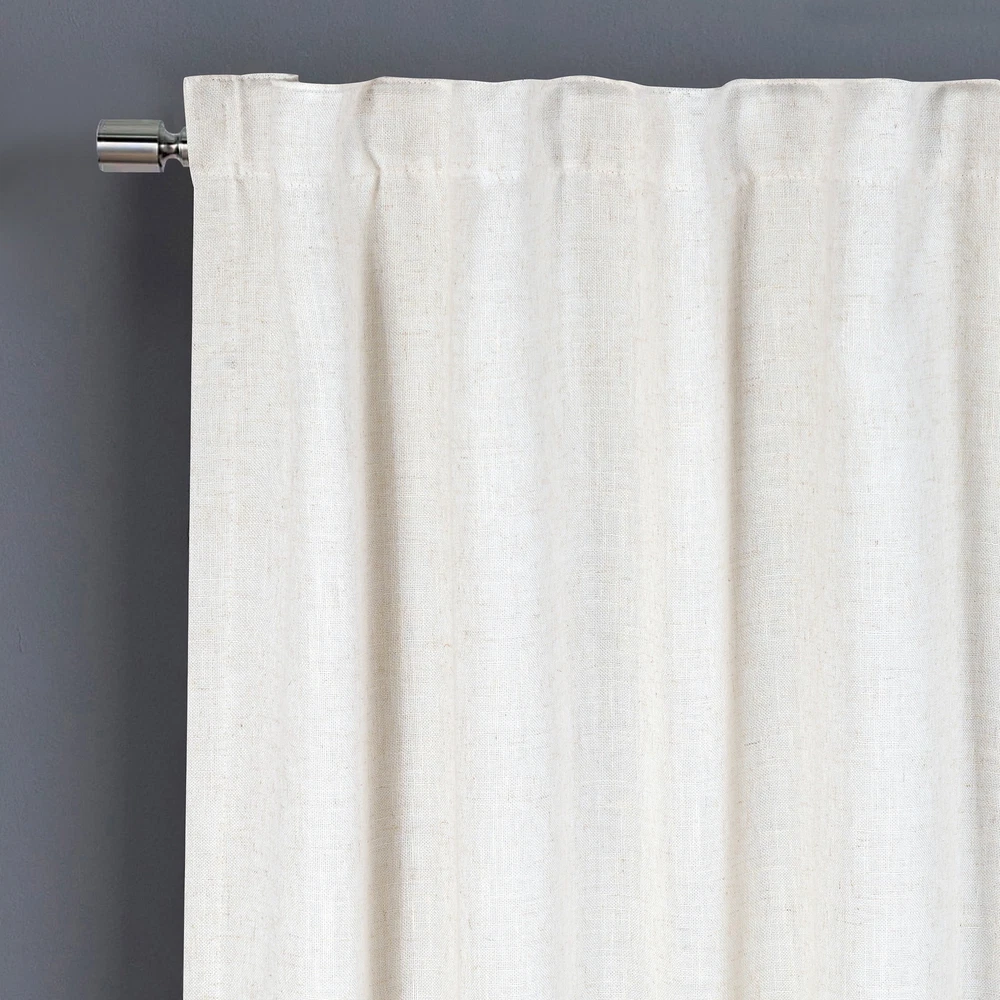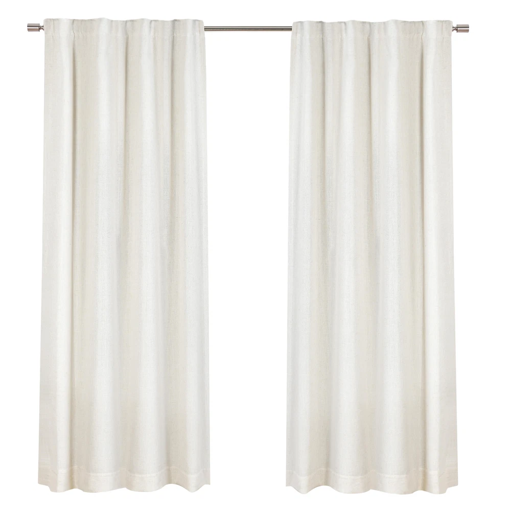 Fashion meets function with Better Homes & Gardens Linen-Blend Curtain Panel. A chic and dramatic look for any window in your home, this curtain has a blackout lining to help block out sun, noise and provide privacy and insulation. The rod-pocket top allows for effortless, fuss-free installation, the simple design easily integrates with the décor in any room and the panel is machine washable so maintaining that fresh look is a breeze. Includes: 1 curtain panel Dimensions: 50” W x 84” L Hanging Style: Rod pocket for easy hanging and styling Light Filtration: Blackout and noise reducing Material: 90% Polyester10% Linen Care: Machine washable Why You’ll Love It: Blackout properties filter out the sun; perfect for sleeping in or mid-day movie marathons. Style Tip: For windows you open often, choose sill length. For a casual look, let the fabric fall a few inches below the window. For a tailored or dramatic look, choose floor length curtains to make your windows a focal point Linen Blend Blackout Curtain Panel from Better Homes & Gardens
