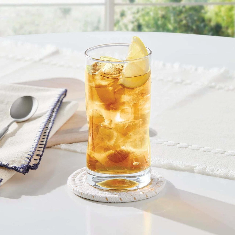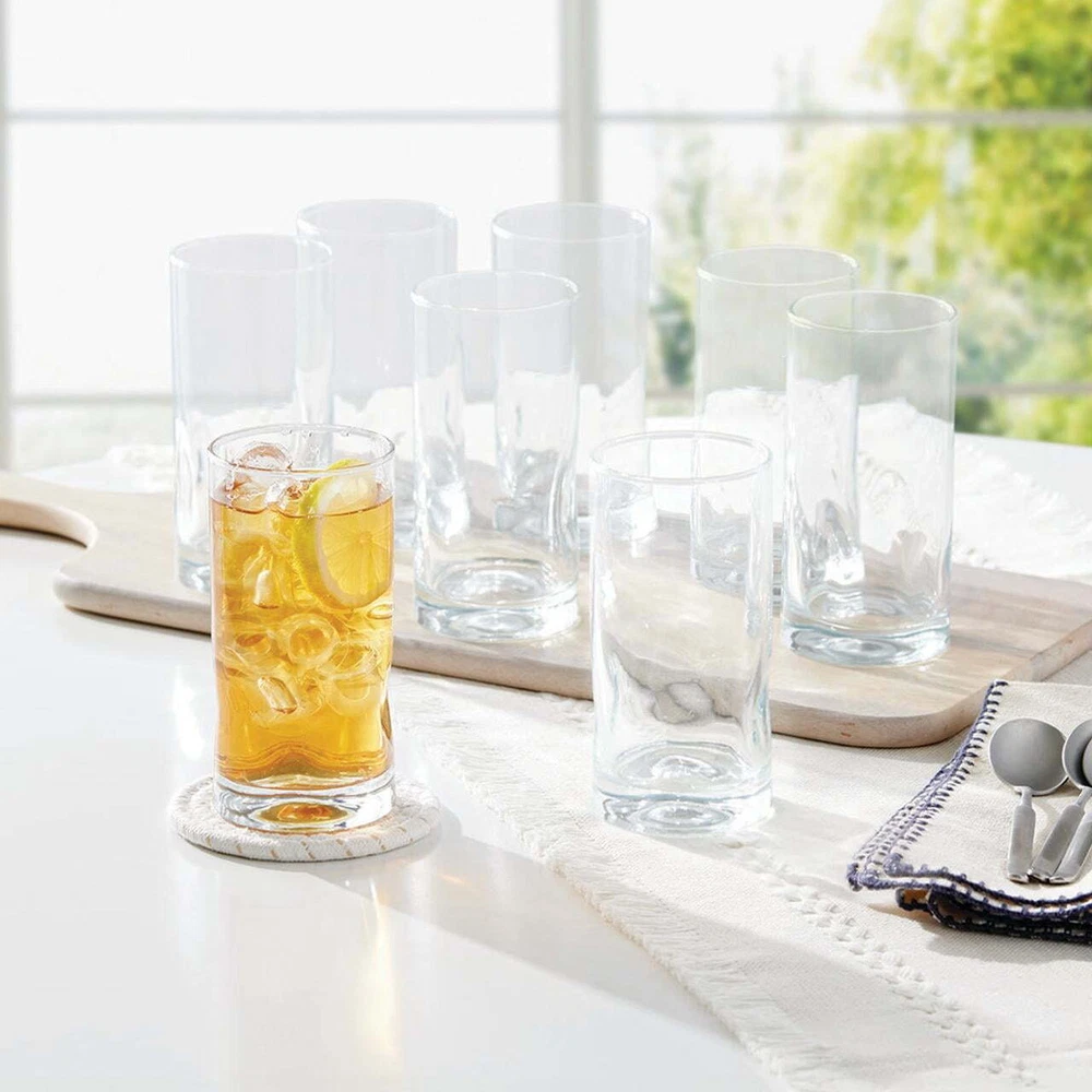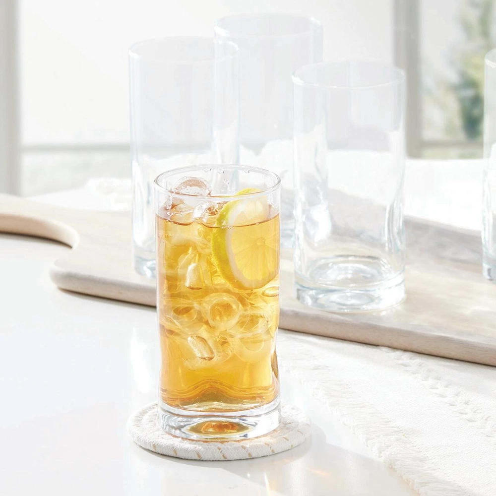 Introducing Mainstays Lyra Coolers - the epitome of sophistication and functionality for your beverage enjoyment. Elevate your drinking experience with this set of four sleek coolers, designed to enhance the pleasure of sipping your favorite refreshments. Crafted with premium quality glass, these coolers boast a perfect blend of style and durability, making them an essential addition to any glassware collection. Set includes four 16.70oz glasses Ideal for juice, milk, water, or mixed drinks Beautiful, clear glass construction