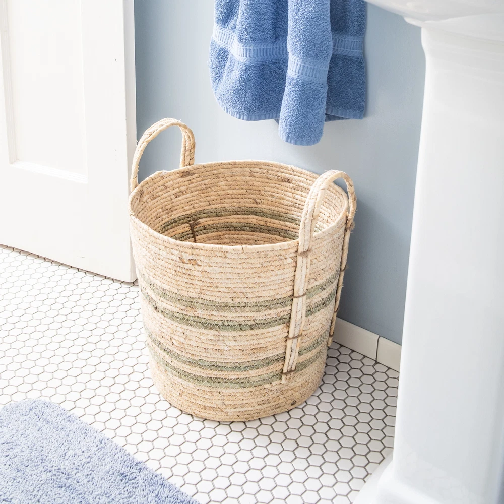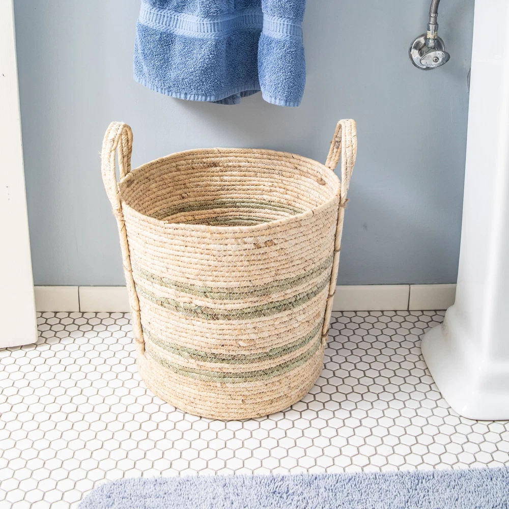 Keep your home organized and looking great with the Better Homes & Gardens Large Natural Maize Basket. Whether you place the basket in your living room, den, bedroom, bathroom or entryway, the woven basket will help bring softness, color and depth to your room. Perfect for magazines, books, toys, blankets, pillows or towels, the natural maize fibers bring texture to your space, blending with any decor and the jute woven handles make for easy lifting. On Feb 15, 2025 at 01:21:24 PST, seller added the following information: