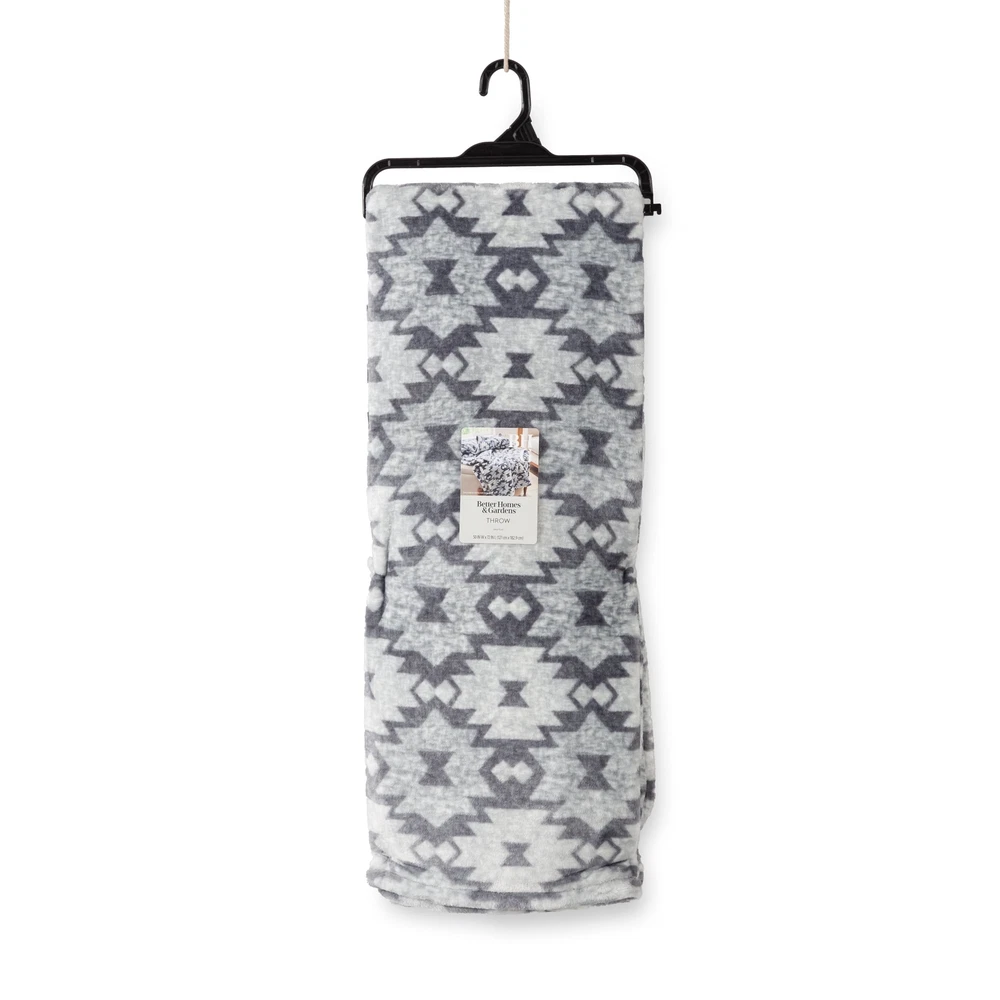 Better Homes & Gardens Printed Ultra Plush Adult Throw, 50” x 72”, Charcoal Geo