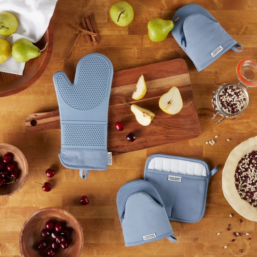 BHG SILICONE 4PK SET_BLUE LINEN Cotton and Polyester Construction Easy care, machine washable