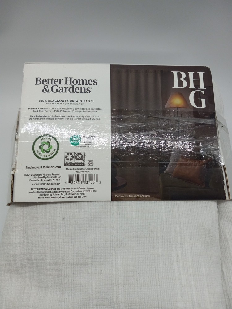 Care Instructions: Machine Wash Number of Panels: 1 UPC: 0678298339470 Item Length: 84 in Model: BH14740103170C4 Color: cream Window Treatment Sheerness: Blackout Type: Linen Blend Curtain Recommended Room: Living Room, Bedroom, Dining Room Curtain Panel Style: Rod Pocket gtin13: 0678298339470 Piece Count: 1 Item Width: 50 in Curtain & Valance Type: Standard Curtains Transparency: Blackout Brand: Better Homes & Gardens Assembled Product Dimensions (L x W x H): 0.01 x 50.00 x 63.00 Inches Features: Blackout Curtain Width: 50 in Cleaning, Care & Maintenance: Machine Washable Material: Linen Blend Mounting: Wall Mounted Recommended Use: Standard Window Department: Adults, Teens, Kids, Unisex Baby & Toddler Curtain Length: 84 in Country of Origin: China