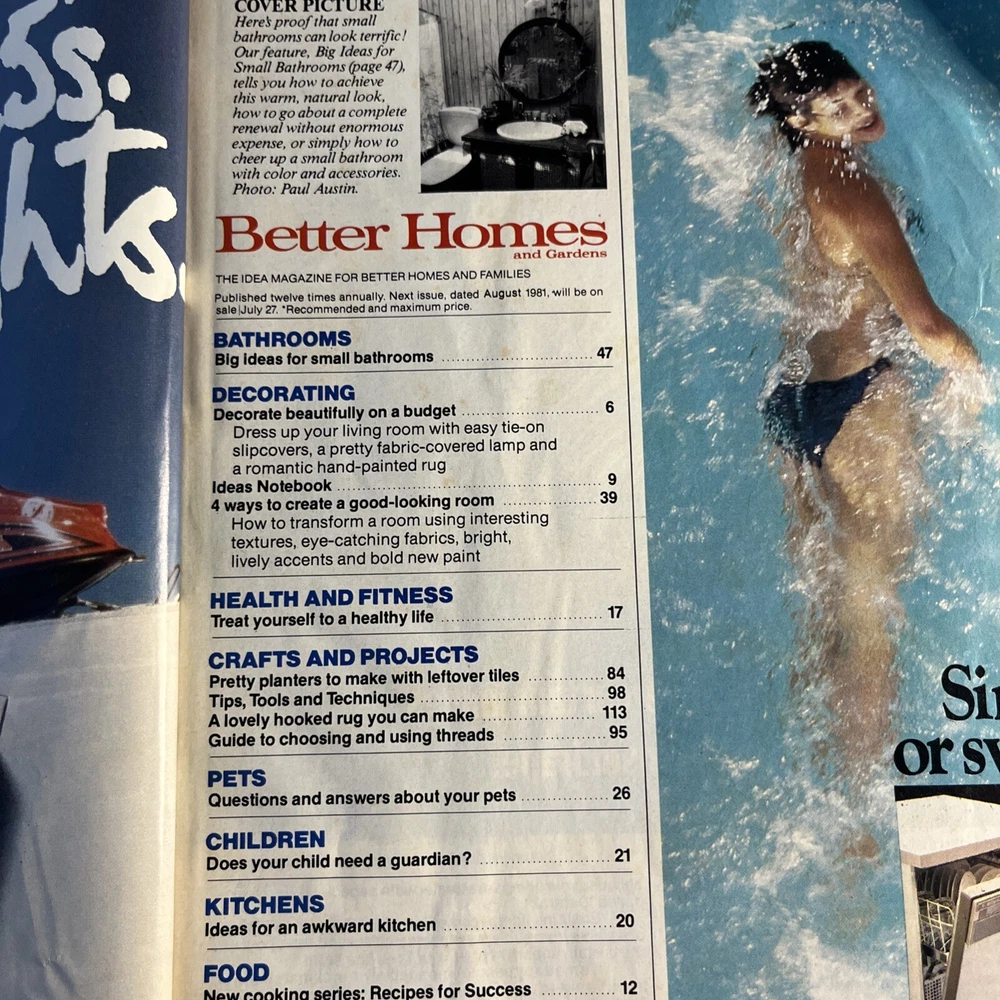 Get a taste of nostalgia with this vintage July 1981 edition of Better Homes & Gardens Magazine. Packed with tips on retro decorating, cooking, travel around Australia, knitting, macrame, crafts, and growing vegetables, this magazine is a treasure trove of inspiration for home and garden enthusiasts. Written in English and published monthly in Australia, it's a must-have for anyone interested in home decor, hobbies, lifestyle, and delicious food and drink ideas. +36 ways to keep out the cold. Simply decorating plans for living rooms and making a lovely hooked rug and bright ideas for small bathrooms. Lawns and eight page booklet Thank you for purchasing from A-ZCollective
