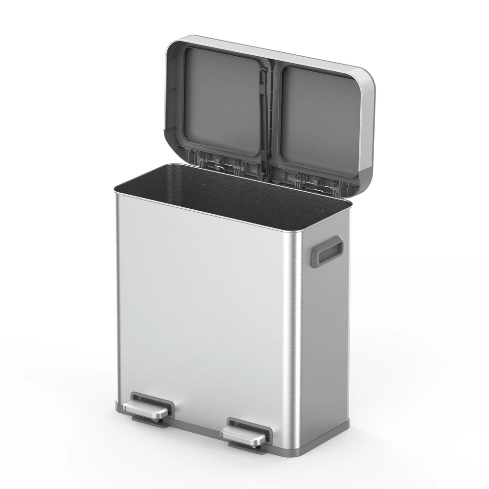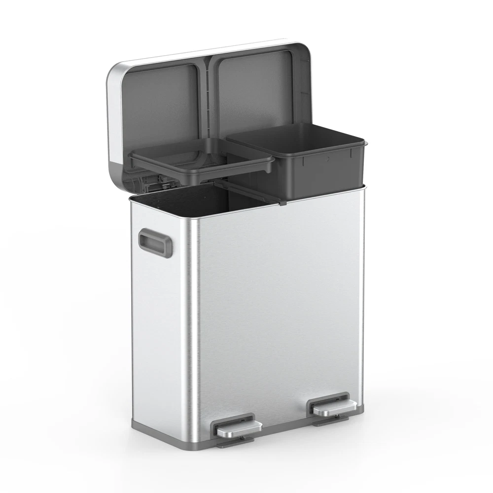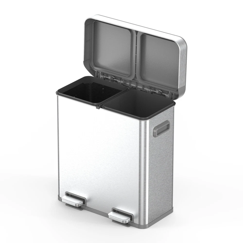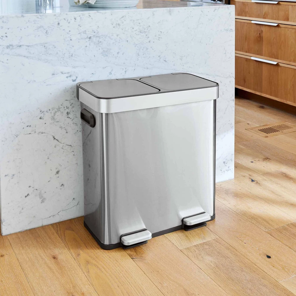 Introducing the Better Homes & Gardens Dual Unit Trash Can with Soft-Close Lid, designed to elevate your waste management experience with efficiency and elegance. This innovative trash can boasts dual compartments, comprising a removable 8-gallon bin and a separate ring liner, facilitating convenient sorting of trash and recyclables without hassle. Equipped with a soft-close lid mechanism, it ensures a quiet closure, eliminating the annoying slam commonly associated with traditional bins. The stay-open lid feature adds functionality, allowing for uninterrupted disposal during lengthier chores. Crafted from commercial stainless steel, this trash can is not only durable but also resistant to fingerprints, maintaining its sleek appearance with minimal upkeep. Enhanced with a non-skid base, it stays firmly in place, preventing accidental sliding when opening. For added convenience, sturdy handles are integrated, facilitating effortless relocation from one space to another. Compatible with standard 8 to 10-gallon trash bags, this Better Homes & Gardens Dual Unit Trash Can redefines waste management with its blend of functionality, style, and durability. DUAL COMPARTMENTS - One removable 8-gallon bin. One removable ring liner. Allows you to separate trash and recyclables easily. TRASH BAGS - Fits standard 8 to 10-gallon trash bags. SOFT-CLOSE - Lid closes quietly without slamming. STAY-OPEN LID FEATURE - Keeps the lid open for longer chores. FINGERPRINT RESISTANT - Commercial stainless-steel stays clean longer. NON-SKID BASE - Prevents your trash can from sliding when opening. HANDLES - To easily move your trash can from one place to another. CENTERED ROD – Secures the bucket liner and ring liner in place. STAINLESS STEEL COLLAR – Sleek design that not only adds a touch of elegance but allows for smooth and fluid movement, ensuring comfort and style in every motion. On Feb 18, 2025 at 20:01:13 PST, seller added the following information: