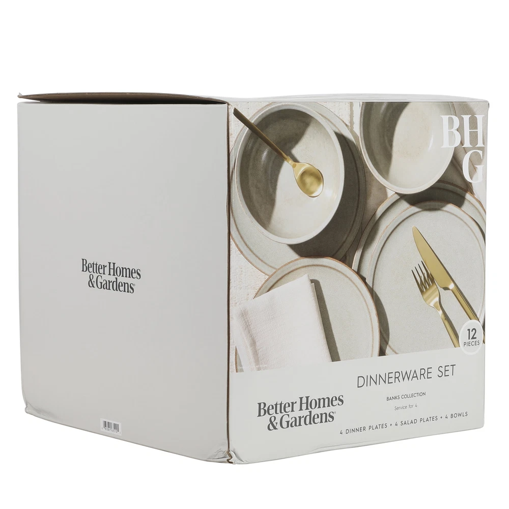 Entertaining at home opens up a fun space to tell stories and make memories over delicious meals and refreshing drinks. Set the table with this 12-piece dinnerware set from Better Homes and Gardens. Perfect for a service for four, these stoneware plates and bowls are crafted for strength and durability. This beautiful dinnerware set features a semi-matte finish topped with a beautiful reactive glaze. Artisans use this glazing technique to create natural variations, making these dishes one-of-a-kind pieces that deserve to be a great addition to your collection. The semi-matte finish lends subtle sophistication to elevate your dining and entertaining style. Their earthy brown shade provides a warm and versatile aesthetic to match any kitchen or table setting. Classic round shapes remain timeless and functional, offering ample space to plate and display mains, side dishes, desserts, and coordinated meals. Enjoy the convenience of dishwasher-safe cleanup and the modern flexibility of microwave-safe use. Whether you are a budding host or an expert homemaker, make Better Homes and Gardens a part of your celebration. Treat guests to sumptuous breakfasts, signature suppers, and indulgent desserts to keep them coming back for more. As sturdy as they are fashionable, these dining must-haves and tabletop accessories take everyday dining and entertaining to the next level. Four 10.25-inch dinner plates Four 8.3-inch salad plates Four 6-inch cereal bowls Perfect for everyday use Durable stoneware material Semi-matte finish adds enough shine to bring out its earthy brown color Reactive glaze creates a unique design for added visual depth and organic appeal Dishwasher and microwave safe