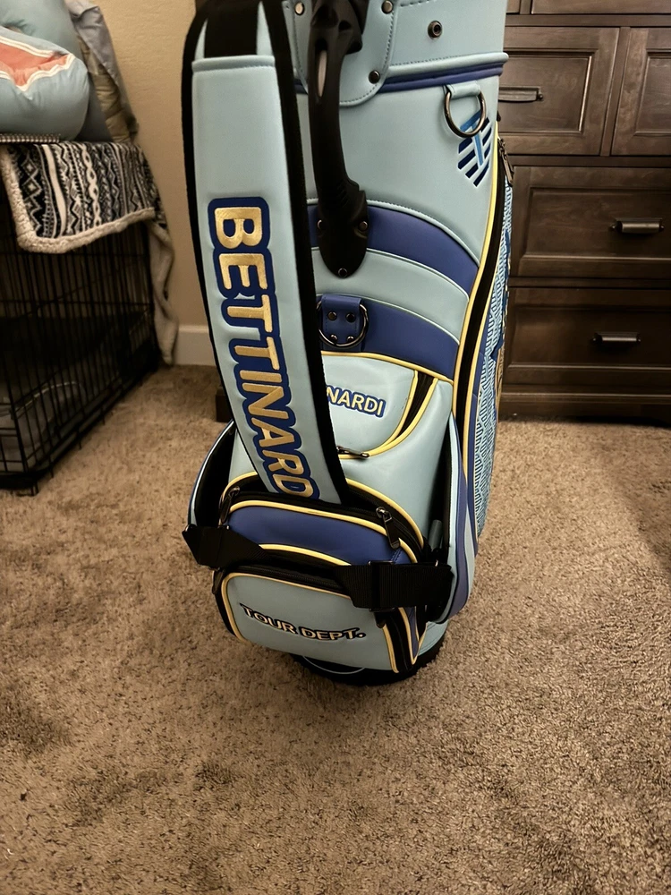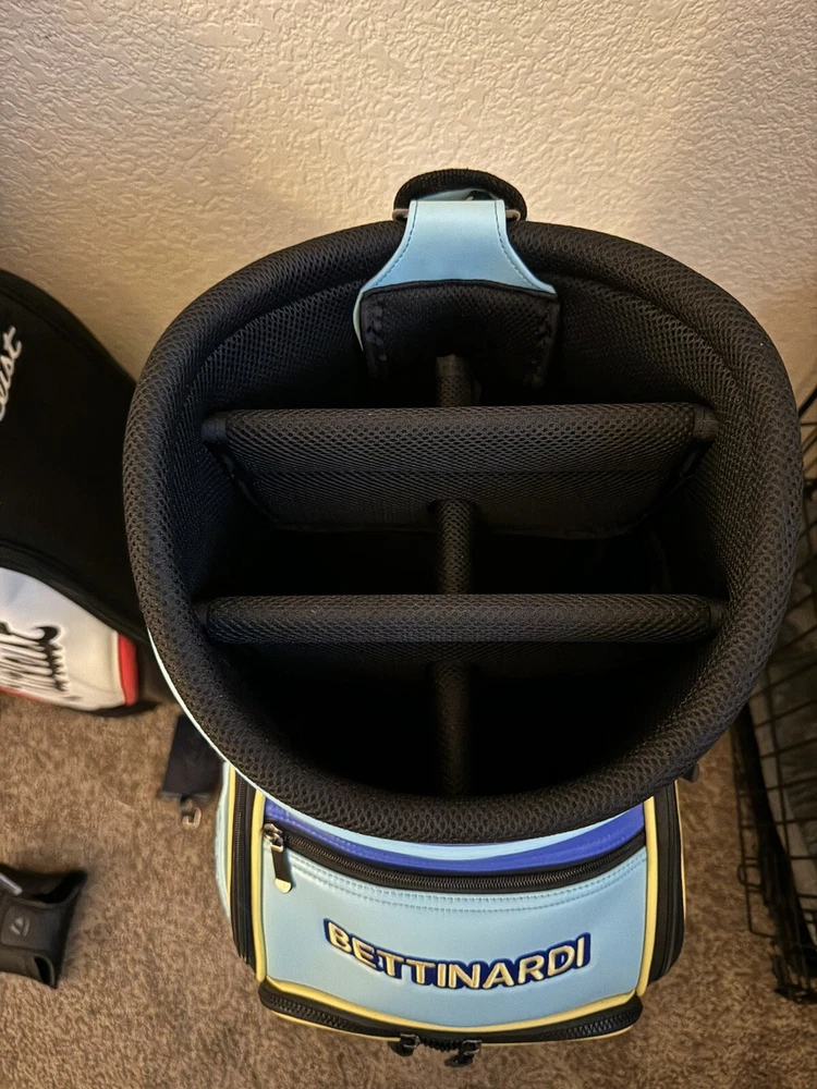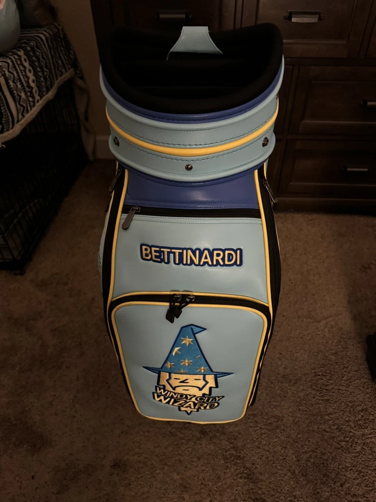 Up for sale is a beautiful Bettinardi Wizard Staff Bag. This has been used for a handful of rounds (on a cart only) and has been taken care of very thoughtfully. No wear marks to speak of. I’d give the condition 9/10, could pass for 9.5/10. Comes with a brand new rain cover (see pictures). Ships via UPS Ground, FedEx Ground, or USPS Ground Advantage