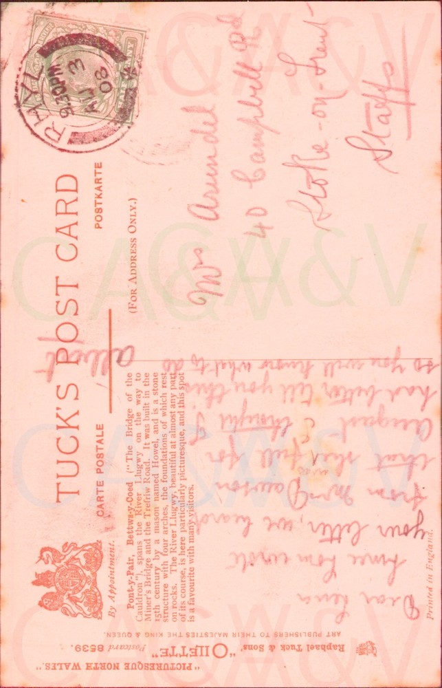 Bettws Y Coed Pont Y Pair 1908 Tucks Oilette Picturesque North Wales 8539 Original item, so watermark doesn't appear on actual postcard. For condition, see photos. Anything condition related not visible will be described. Postcard from a large collection. If you have any questions please don't hesitate to ask. Please also view our store to see other vintage and antiques items in our growing shop. Thanks. Orders of multiple items: postage charges are combined automatically at checkout. If items are checked out separately we endeavour to combine retroactively by partial refund if the separate purchases occur before despatch, send a message to notify us to guarantee retroactive postage adjustments.