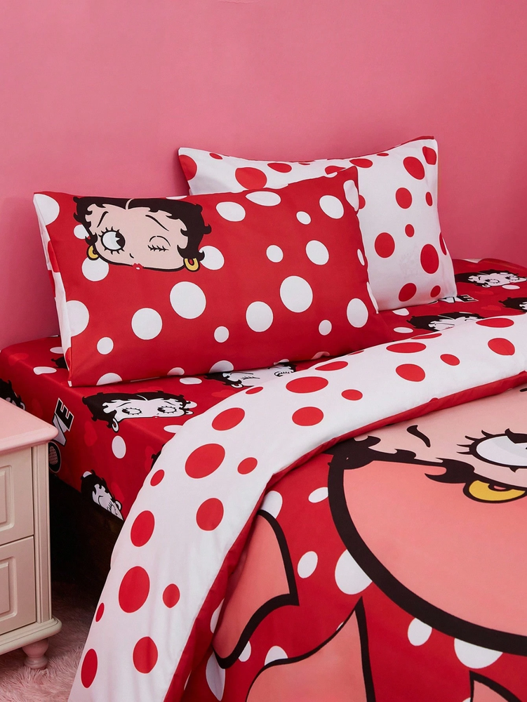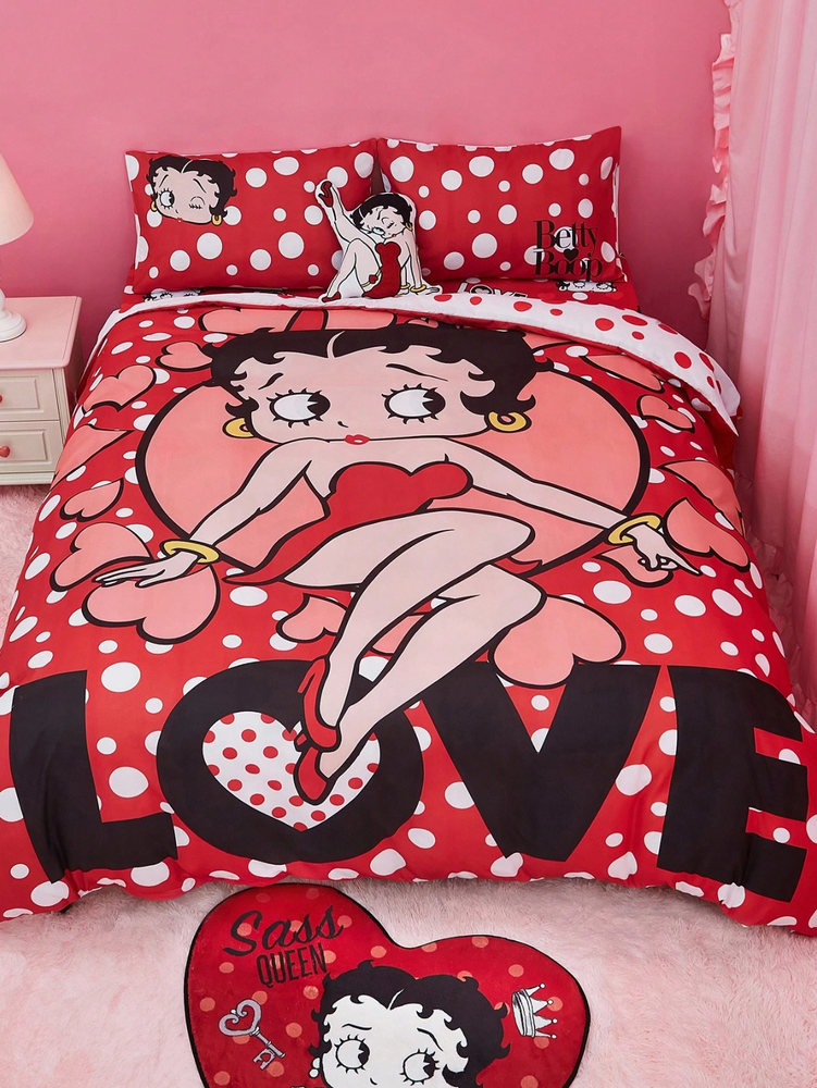 The Betty Boop Duvet Cover Set is a colorful and playful bedding set featuring the iconic character Betty Boop. Made for a bedroom, this comforter cover set is machine washable and easy to care for. Add a touch of nostalgia and charm to your space with the lovable Betty Boop character and her classic design.