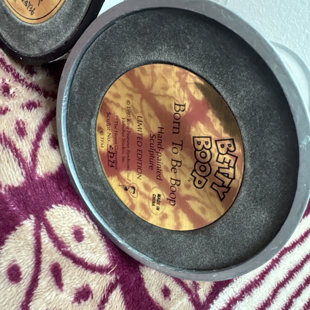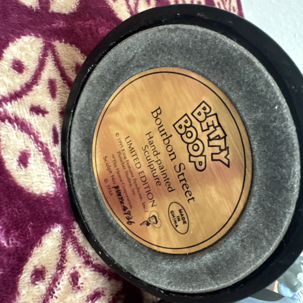 Packaging:Without PackagingTime Period Manufactured:1990-1999Theme:Cartoon & TV CharacterType:FigurineMaterial:CeramicSigned:NoFranchise:Betty BoopVintage:YesOriginal/Licensed Reproduction:OriginalCharacter:Betty BoopCountry/Region of Manufacture:ChinaSeller Notes:“Nothing is missing or broken no scratches or chips”Occasion:All OccasionsAnimation Studio:Paramount Animation