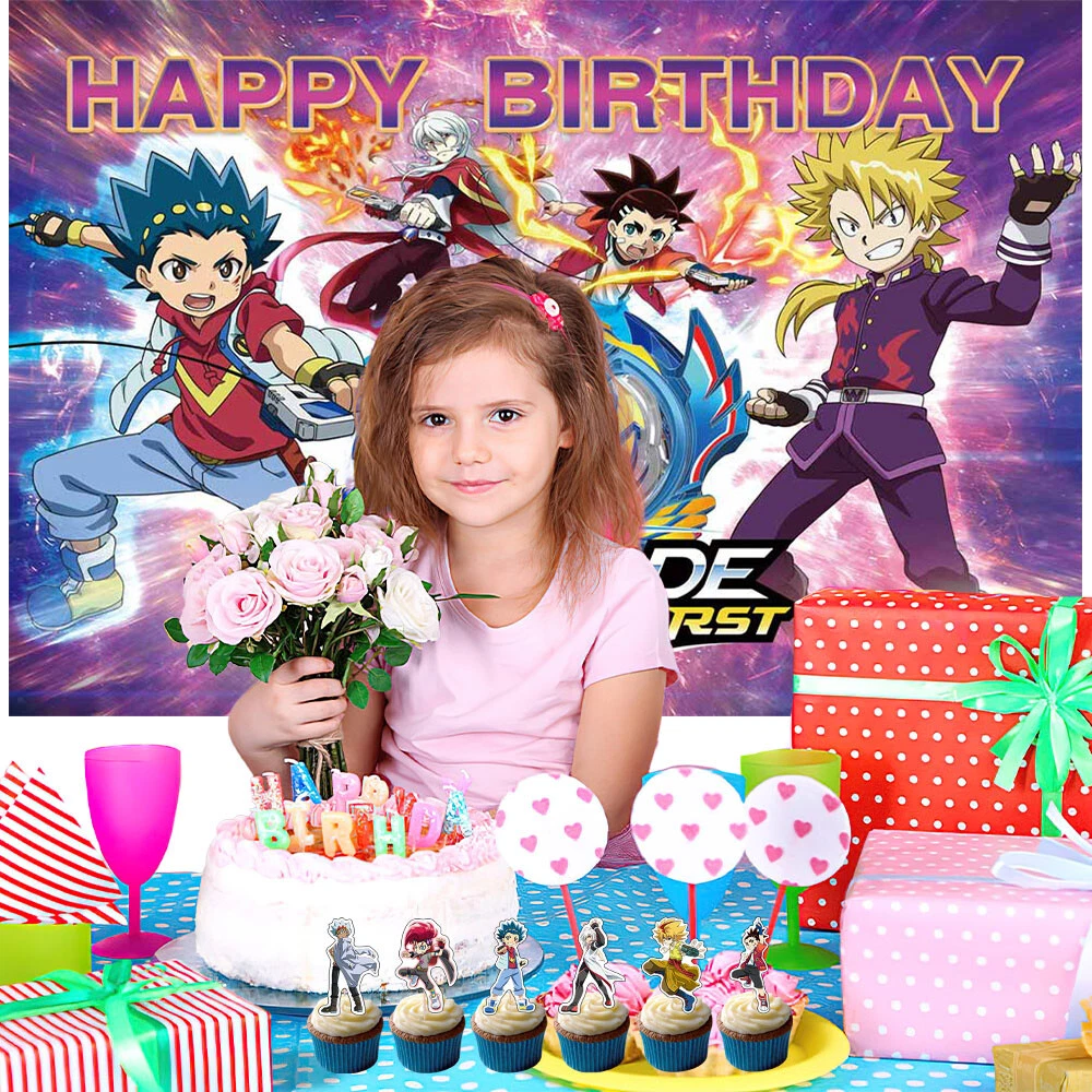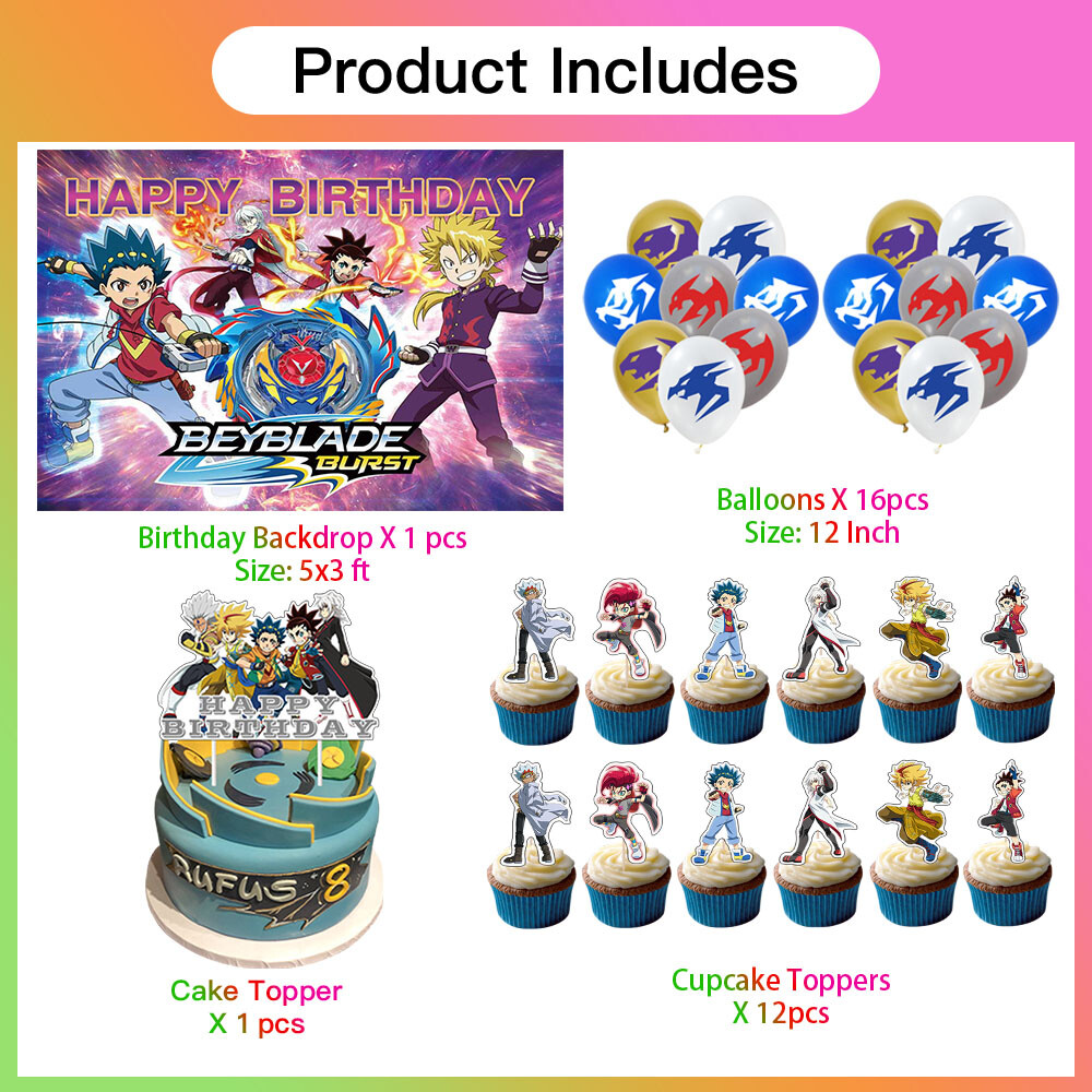 About this item 【Themed Sets of Matching Units】: ☰ Take this good favor for themed party to impress your kids and their friends. ☰ Enrich your kids’childhood dream well,giving them a fantastic surprise. 【Party Decor Is So Easy】: ☰ It contains all of your Beyblade theme birthday party tableware needs and is completely disposable. ☰ You can save more time to enjoy this party with your guests. 【Real Savings For You】 ☰ The shiny large backdrop decor will attract you eyes and make everyone laugh.The banner cloth is printed in high definition, making it the perfect party background wall. It is made of thick cloth, not paper. ☰ You will save over 70% compared to buying all 2 Beyblade party supplies separately. 【Super Value Beyblade Package】: ✪ 1PCS X Large Happy Birthday Banner 5x3ft(150x90cm) ✪ 18PCS Balloons. ✪ 1PCS X Cake Topper. ✪ 12PCS X Cupcake Toppers. 【After Sale Service】: ☰ We try our best to bring the best use experience to our customers. ☰ If you are not satisfied with the purchase of this set or have any questions about the product,please contact us at any time.We will definitely solve the problem for you in the first time. ☰ We can aslo custom backdrop other size or pictures you want. Any questions please contact us.