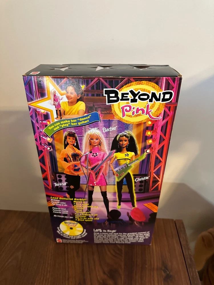 Vintage: Yes Set Includes: Doll, Guitar, Cassette Tape Antique: No Doll Complexion: Light Year Manufactured: 1998 Character: Barbie Material: Vinyl Ethnicity: Caucasian Occasion: All Occasions Signed: No Franchise: Barbie Unit of Sale: Single Unit Personalize: No Doll Eye Color: Blue gtin13: n/a Time Period Manufactured: 1990-1999 Brand: Mattel Handmade: No Age Level: 5-7 Years Doll Age Group: Adult, Teens, Youth Type: Fashion Doll Doll Hair Color: Blonde Doll Gender: Girl Doll UPC: n/a Packaging: Original (Unopened) Country/Region of Manufacture: China Doll Hair Type: Varies Theme: Music Series: Beyond Pink MPN: 20017 Original/Licensed Reproduction: Original Product Line: Beyond Pink