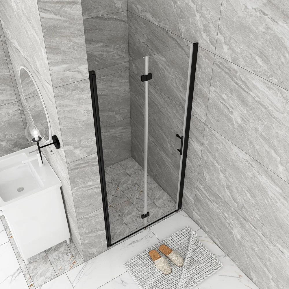 The Bi-Fold Semi Frameless Shower Door offers a stylish and space-saving solution for modern bathrooms. Its Matte Black finish adds a contemporary touch to the space while the semi-frameless design enhances the overall aesthetic appeal. Crafted with clear tempered glass, this shower door ensures durability and safety. The bi-fold mechanism allows for smooth and efficient opening, making it ideal for bathrooms with limited space. Easy to install and maintain, this shower door combines functionality with elegance, providing a practical and visually appealing addition to any bathroom.[Space-Saving Bi-Fold Design]The bi-fold mechanism of this shower door allows it to fold neatly inward, maximizing space efficiency in smaller bathrooms. It provides easy access to the shower area without Free Shipping Over $49.99* Details Bi-Fold Semi Frameless Shower Door with Clear Tempered Glass in Matte Black Product Description: The Bi-Fold Semi Frameless Shower Door offers a stylish and space-saving solution for modern bathrooms. Its Matte Black finish adds a contemporary touch to the space while the semi-frameless design enhances the overall aesthetic appeal. Crafted with clear tempered glass, this shower door ensures durability and safety. The bi-fold mechanism allows for smooth and efficient opening, making it ideal for bathrooms with limited space. Easy to install and maintain, this shower door combines functionality with elegance, providing a practical and visually appealing addition to any bathroom. [Space-Saving Bi-Fold Design] The bi-fold mechanism of this shower door allows it to fold neatly inward, maximizing space efficiency in smaller bathrooms. It provides easy access to the shower area without requiring extra clearance for door swing, making it ideal for compact spaces. [Contemporary Matte Black Finish] The Matte Black finish adds a contemporary touch to any bathroom decor, lending a sleek and stylish appearance. It enhances the overall aesthetic while complementing a variety of interior design themes. [Durable Tempered Glass Construction] Crafted with clear tempered glass, this shower door ensures durability and safety. The tempered glass panels are resistant to shattering, providing a secure and reliable enclosure for showering. [Smooth Operation and Easy Maintenance] The bi-fold mechanism of the door allows for smooth and effortless operation, facilitating convenient entry and exit from the shower. Additionally, the clear tempered glass surface is easy to clean and maintain, ensuring hassle-free upkeep for homeowners.