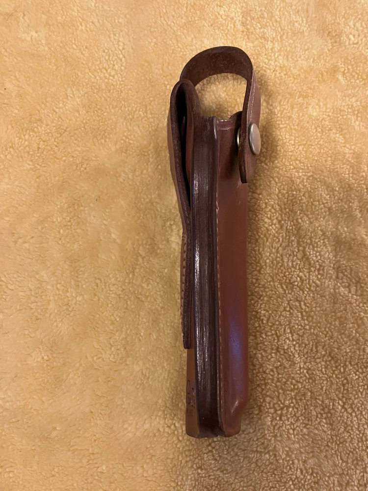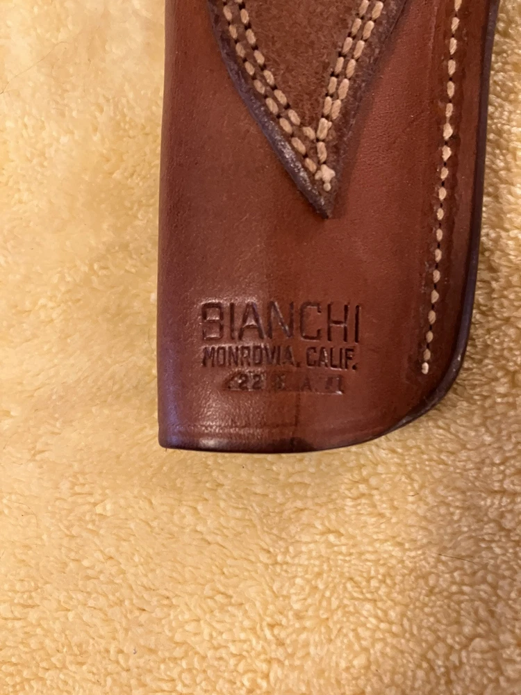 Excellent condition Bianchi leather holster for a .22 Colt New Frontier with 4 1/2” barrel.