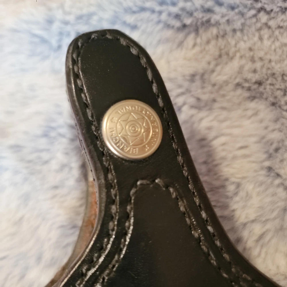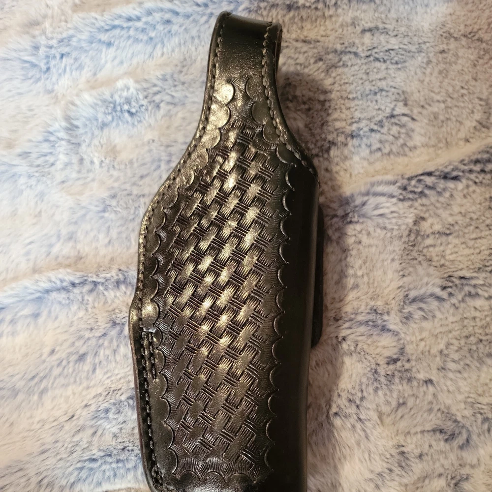 The Bianchi Gun Leather #19L Black Belt Holster is expertly crafted for the Smith & Wesson .45 Colt pistol, providing a secure and snug fit. This high-quality leather holster is designed for right-handed users and features a traditional 3 o'clock carry position, ensuring a comfortable and concealed carry. Boasting a sleek black finish, this holster is made from premium leather and is equipped to hold one magazine, ready for immediate access. The robust construction and attention to detail make it an ideal choice for shooting enthusiasts and professionals alike, offering both durability and a classic aesthetic.