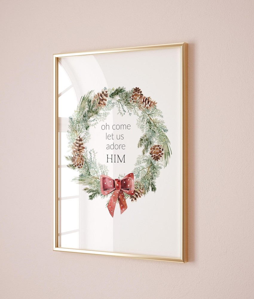 Christian Christmas Print Christmas Christian Bible Verse Wall Art Let Us Adore Him Christmas Scripture Religious Christmas Decor Material: Premium luster photo paper Print type: Inkjet printing One side printed + The finish provides the highest possible resolution and color saturation + Lasts up to 200 years in color and 400 years in black-and-white + Printed on high-quality resin-coated photo base paper medium + Posters can be hung with double-sided tape, tacks, or framed + Hand washing with a gentle cry cloth is recommended for extended durability I will hand select the best choice of paper for your chosen design to ensure top quality results for a beautiful, bright and luxurious print. All prints are sealed in cellophane slips for protection during transportation, and are shipped in a protective cardboard envelope.