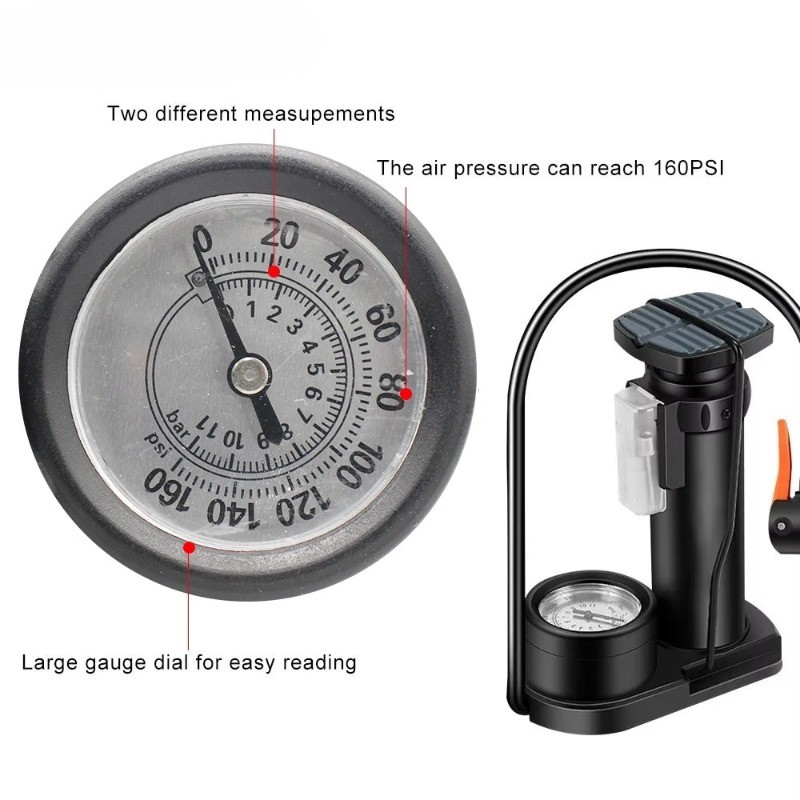 Heavy-Duty Floor Bike Pump with Gauge - Fits Presta & Schrader Valves, 160 PSI
