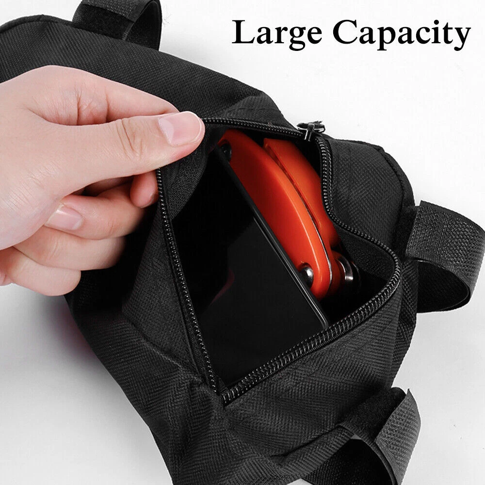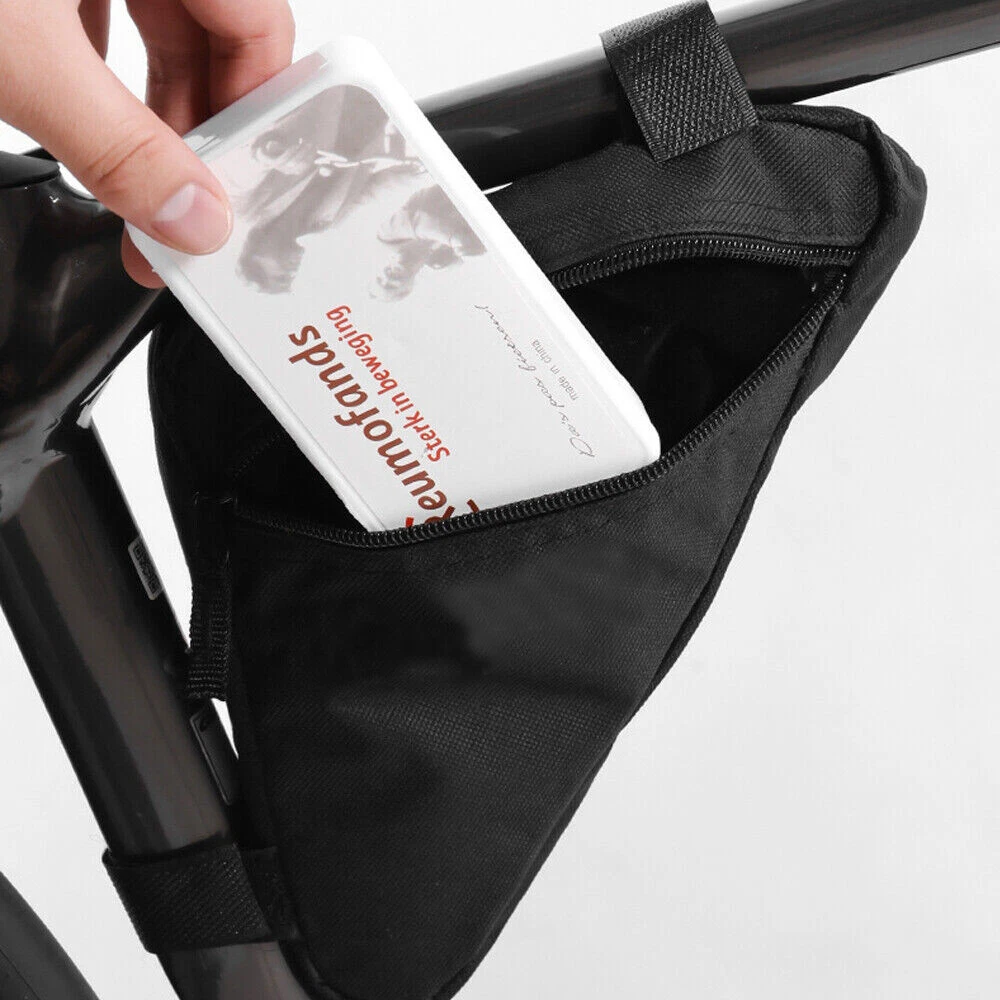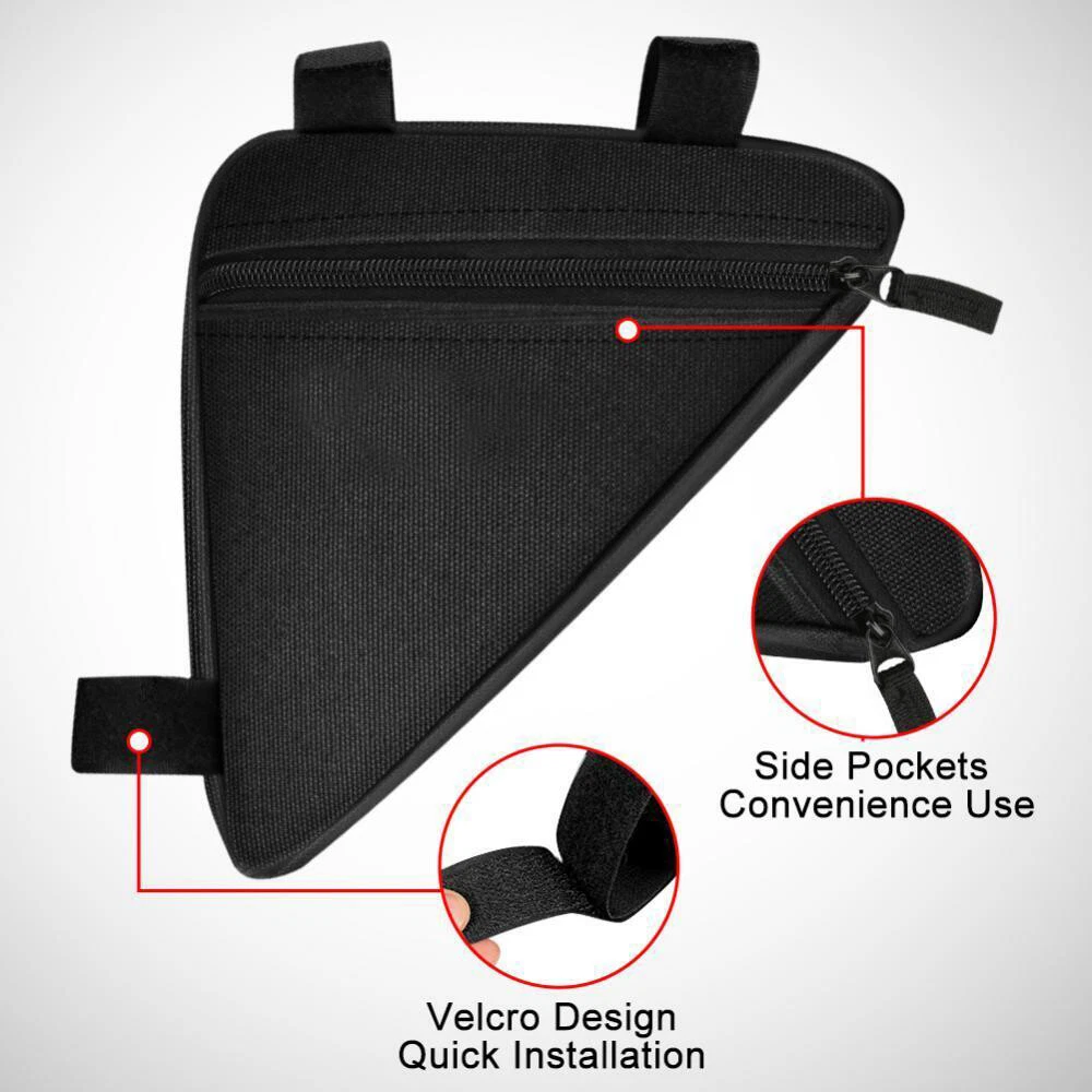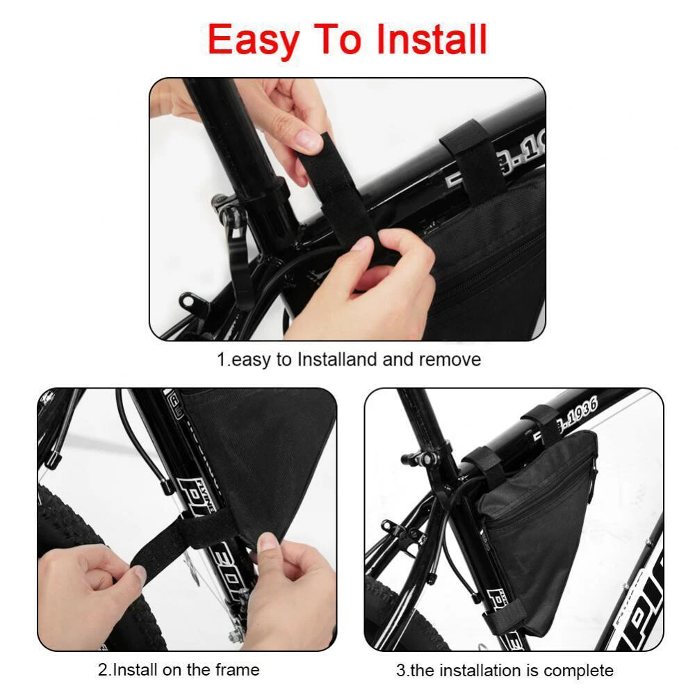 Product Description Feature: 1. The surface material of bike triangle frame bag is water resistant polyester material, waterproof and durable. 2. Big zippered opening mouth design for easy access, with durable zipper closure. 3. This bike storage bag can store most essentials like smart phones, wallet, keys, small bike pump, cable lock, repair tools etc. (not included). 4. This bike frame bag with adjustable straps design which make it suitable for a variety of bicycles and outdoor cycling 5. The waterproof bicycle frame bag fit for MTB, mountain bikes, and road bikes. Suitable for bicycles with 3-9" circumference of the tube frame. It can make your cycling more easy and convenient. Specifications: Type: Bike Frame Bag Color: Black, Black-red, Black-blue, Yellow-green Wide range of use, good for storing small items such as tools, keys, wallet and cell phone etc. With hook & loop tapes, easy to install and remove Universal, suitable for road and mountain bikes. Size: 8X7.87X9.84 inch Material: Oxford Weight: 55 g Package Included: 1/2 * Bicycle Frame Bag